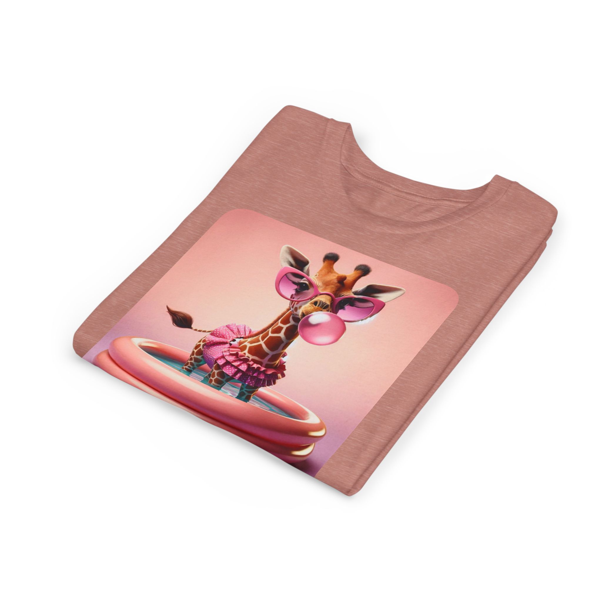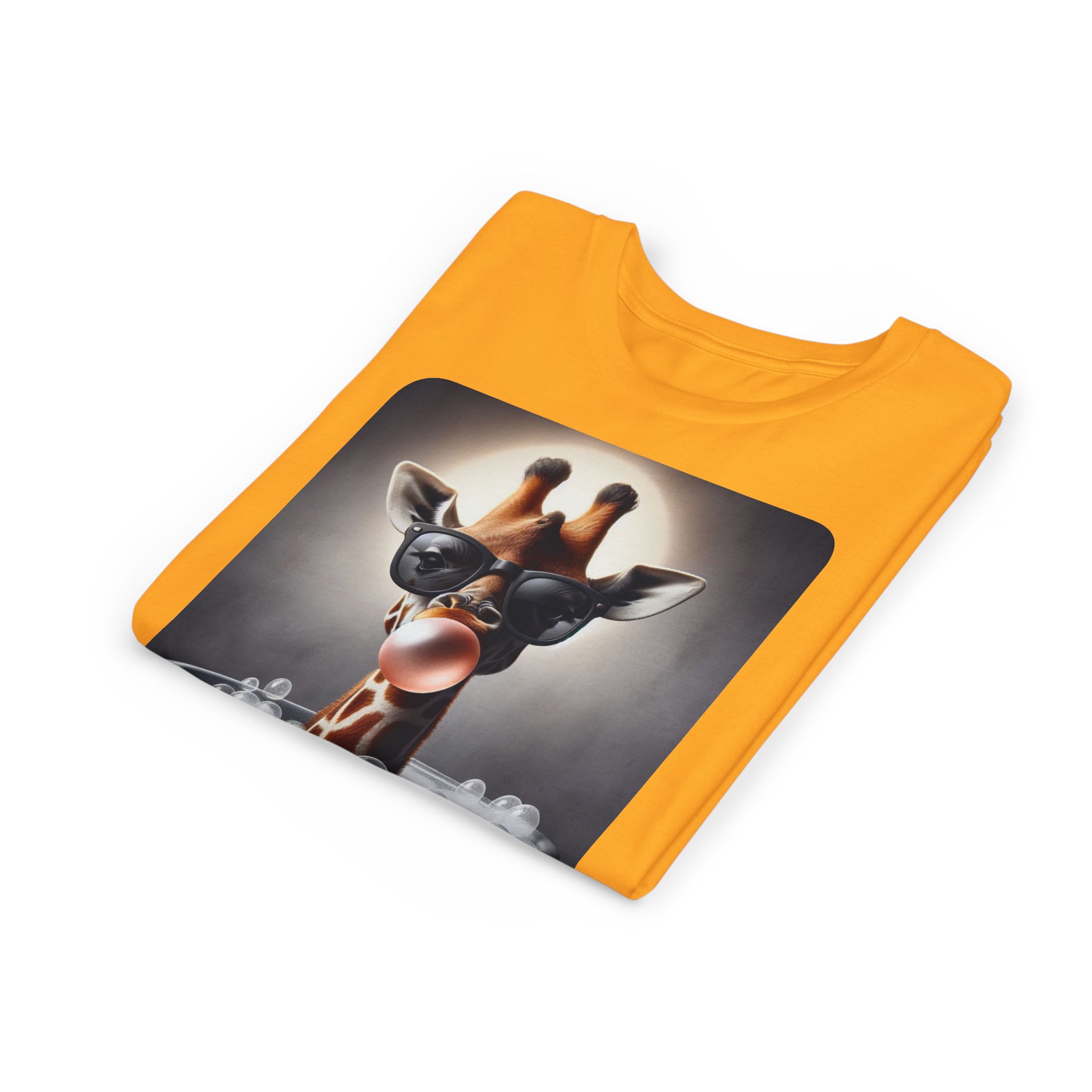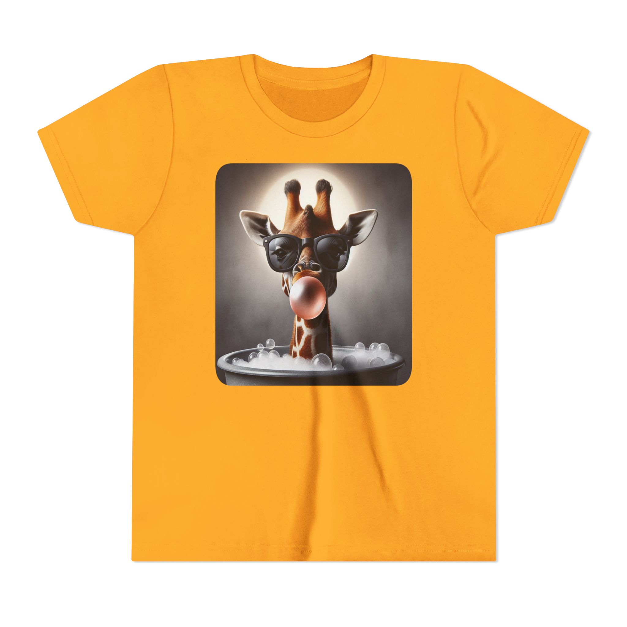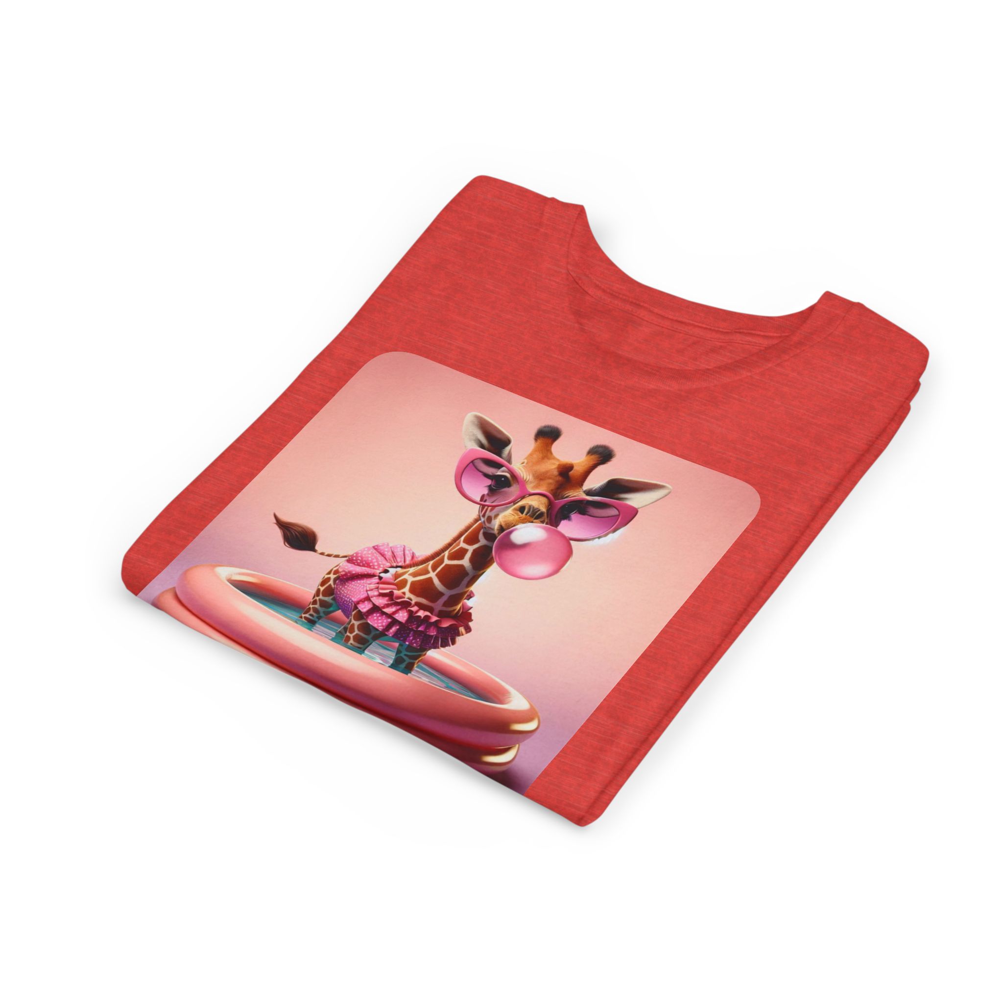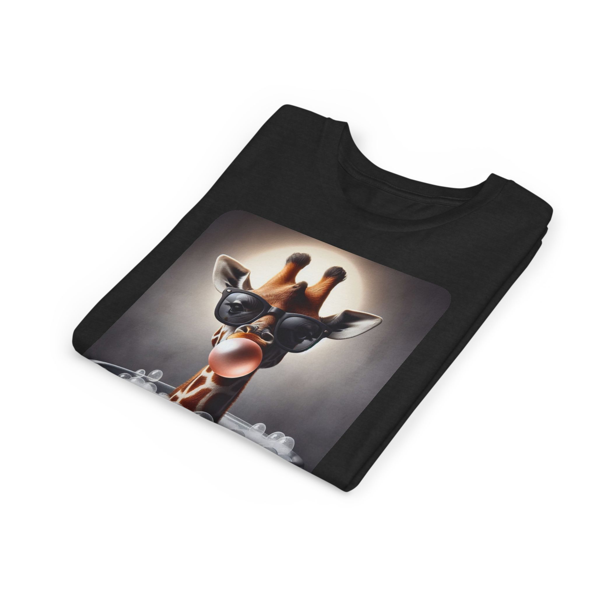 This burgundy kids tee features a bold graphic of a sunglass-wearing giraffe blowing a bubble bathgum bubble from a bubbly tub. It’s quirky, confident, and just the right amount of mischievous. Designed for kids who already know they’ve got style, even if they’re still working on tying their shoes.
