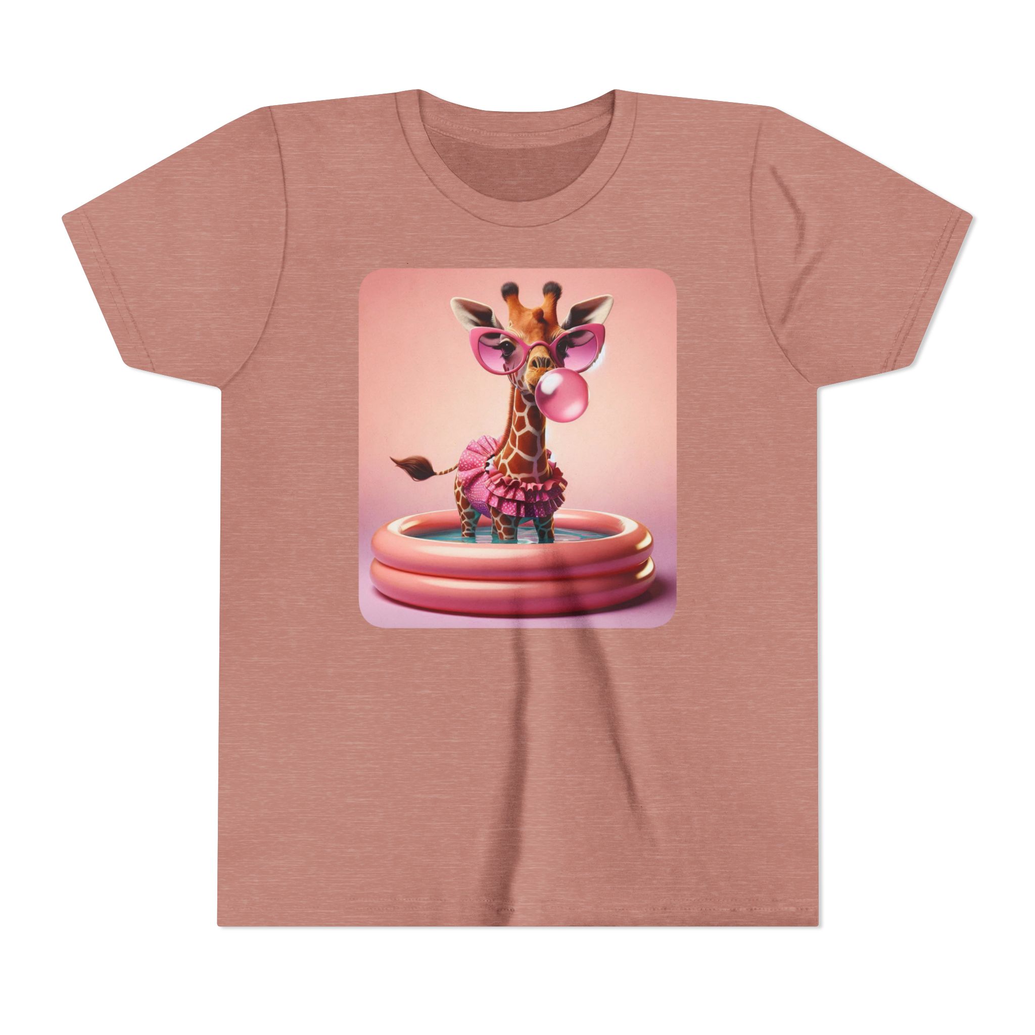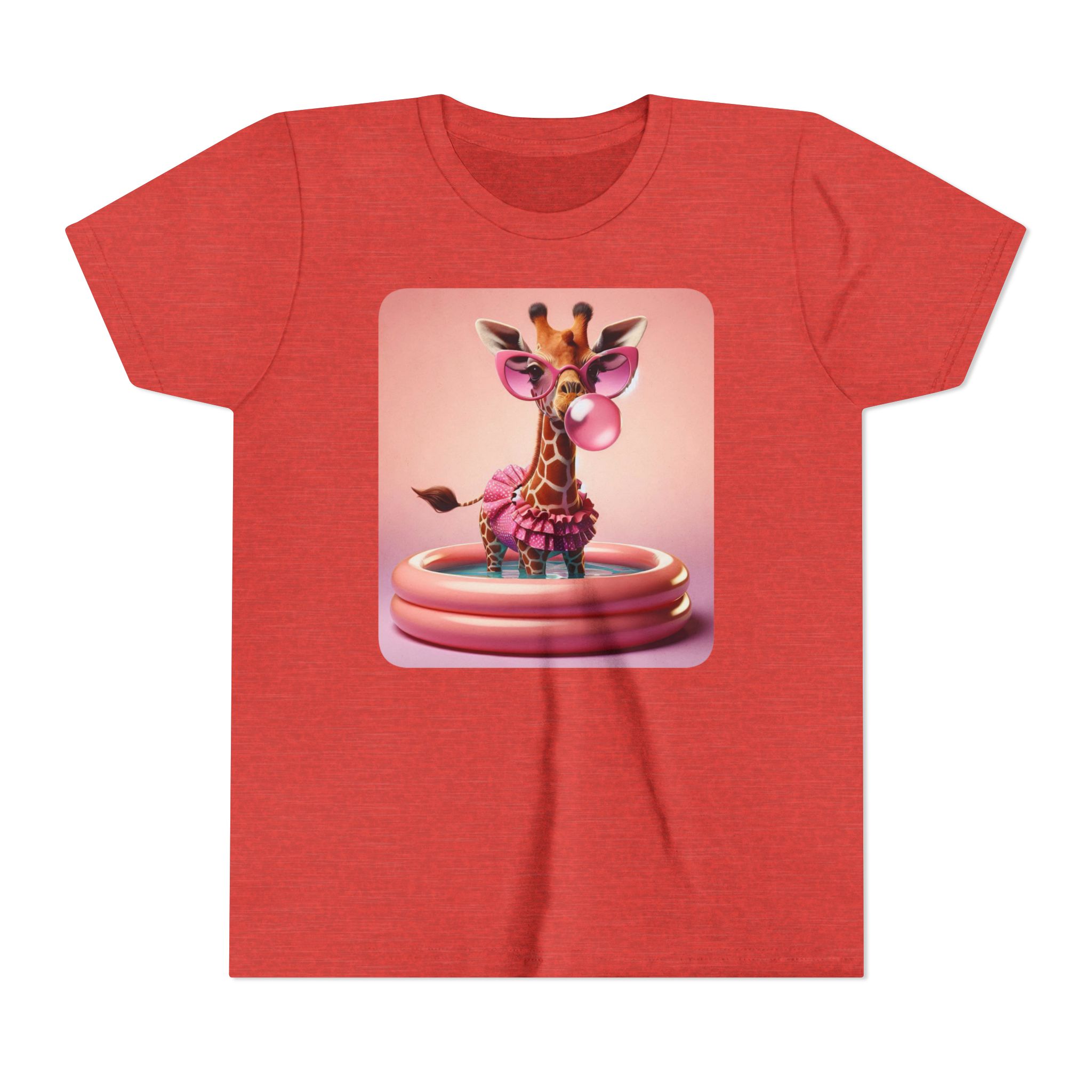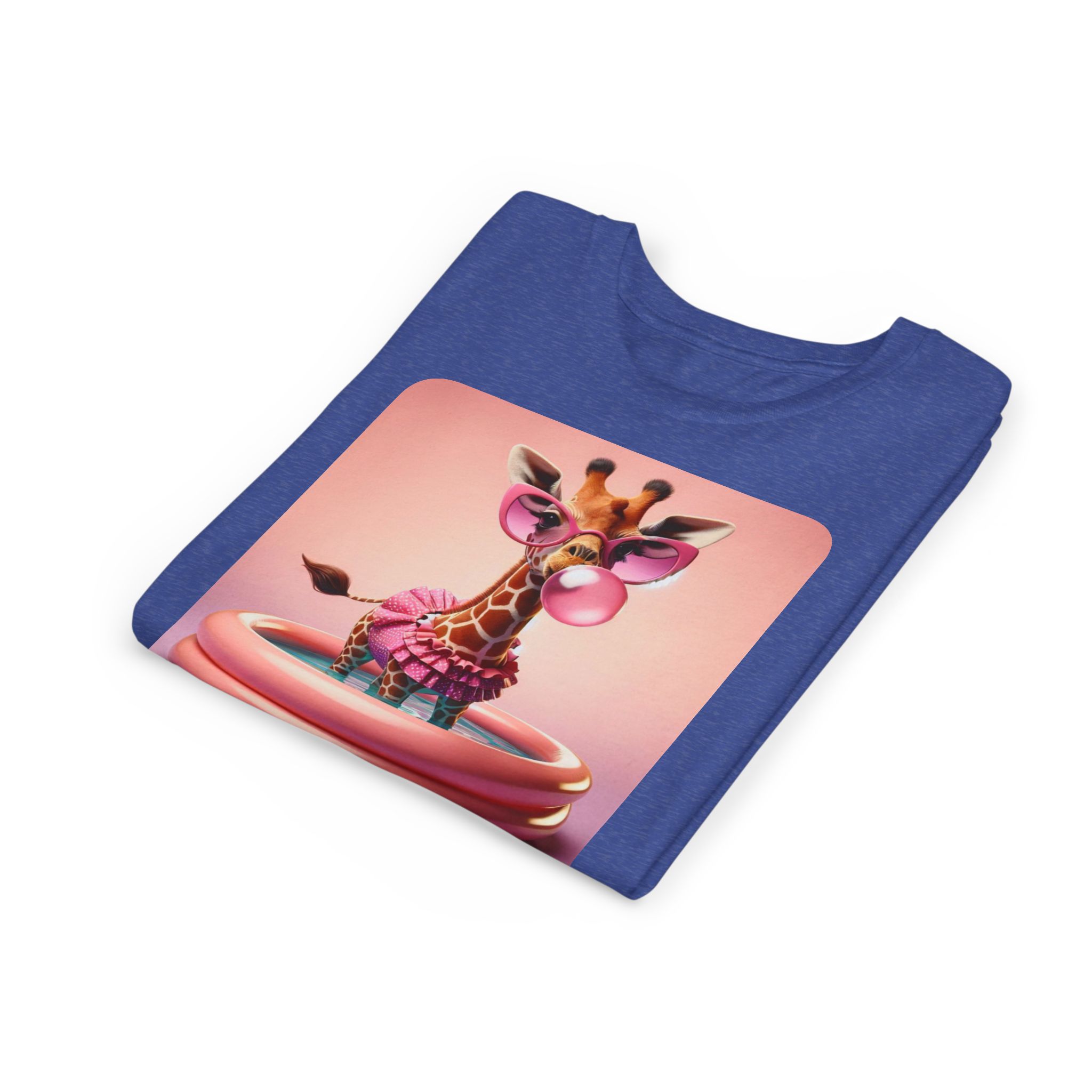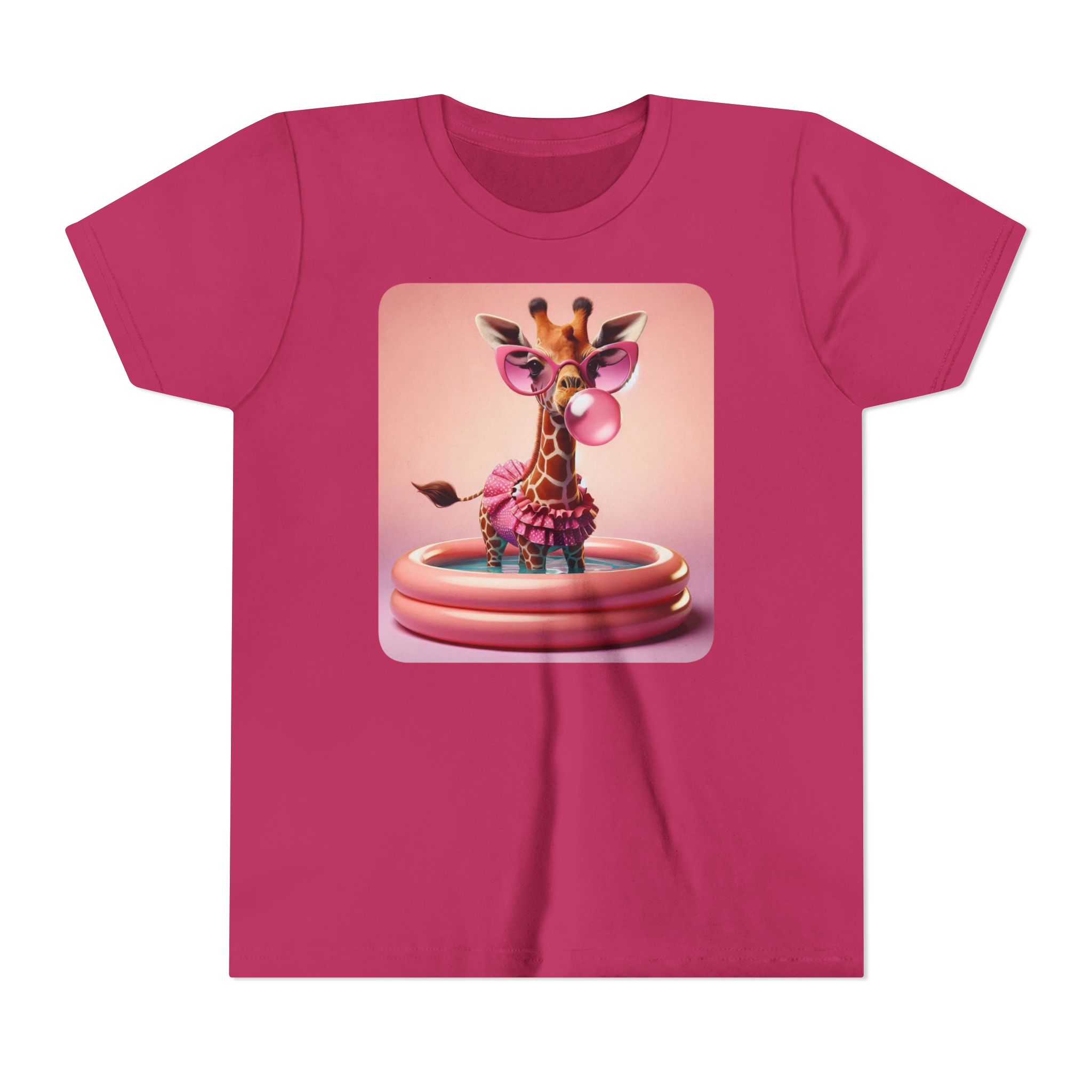 This burgundy kids tee features a bold graphic of a sunglass-wearing giraffe blowing a bubble bathgum bubble from a bubbly tub. It’s quirky, confident, and just the right amount of mischievous. Designed for kids who already know they’ve got style, even if they’re still working on tying their shoes.