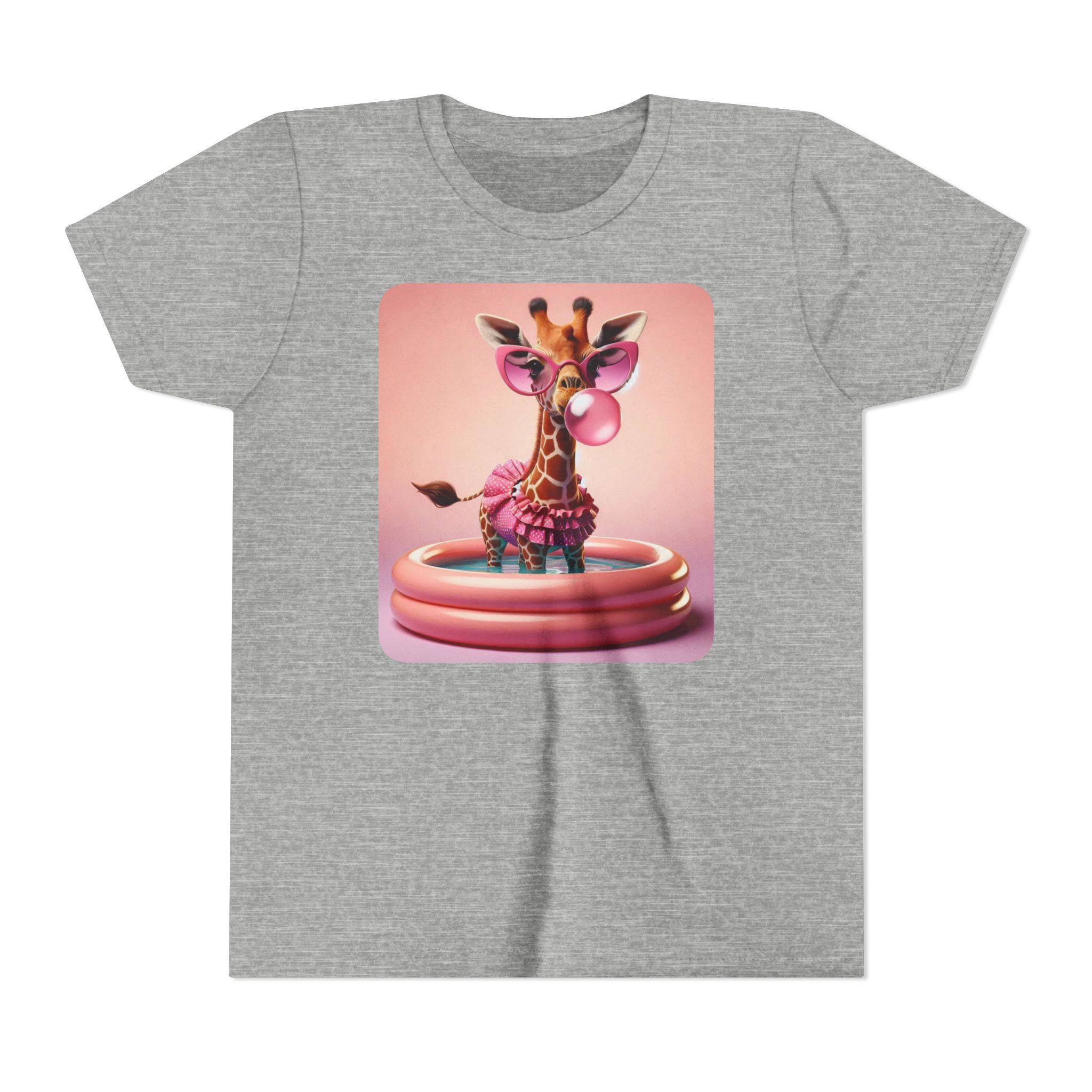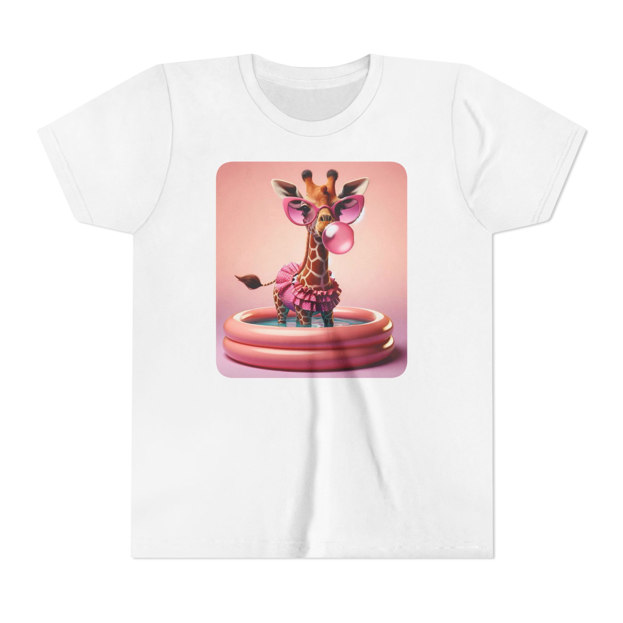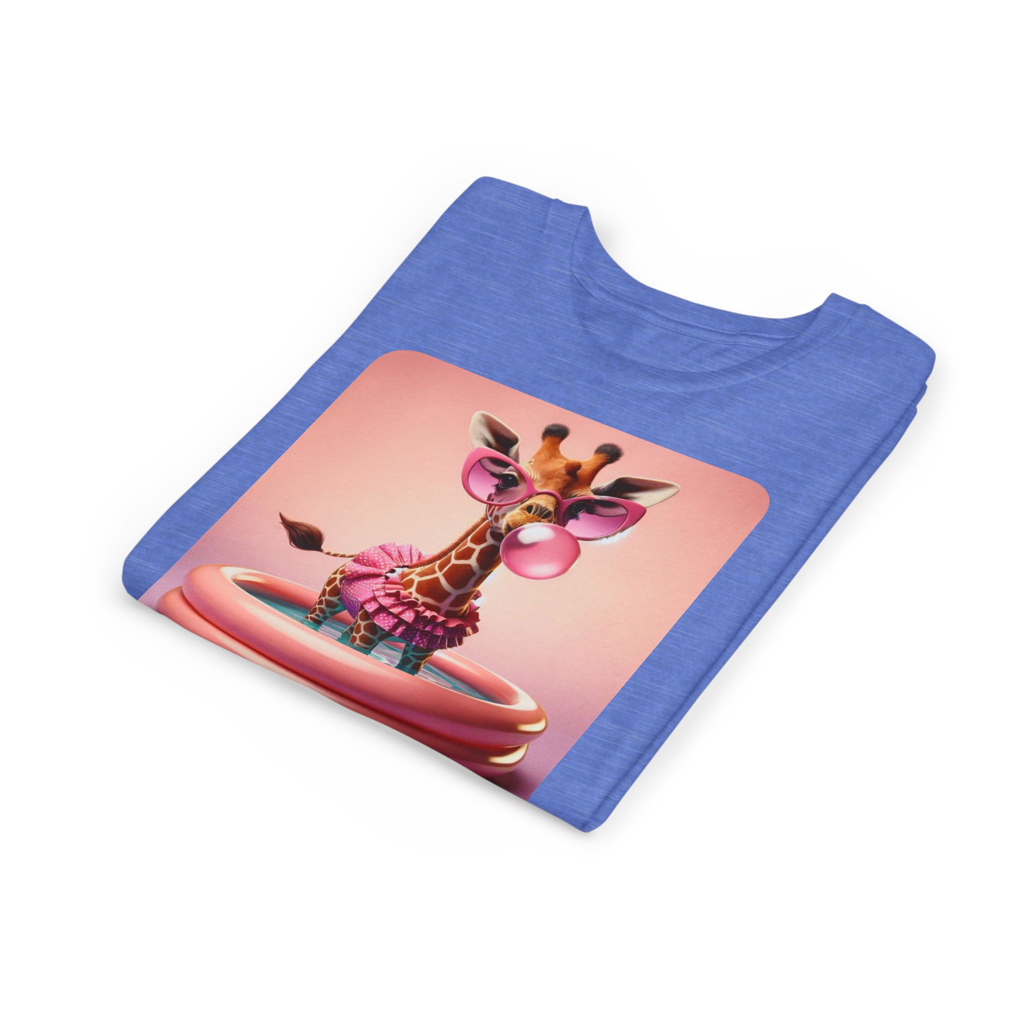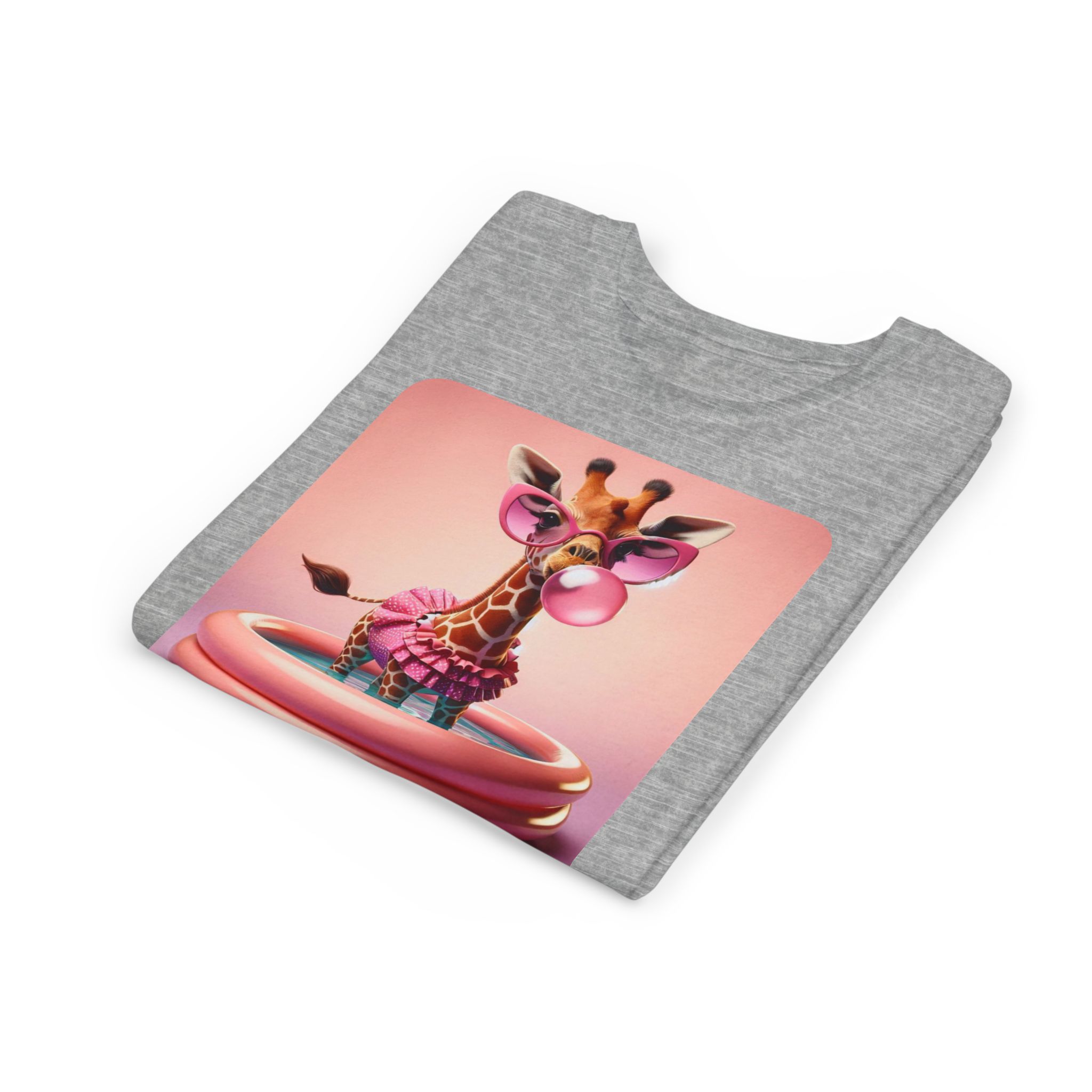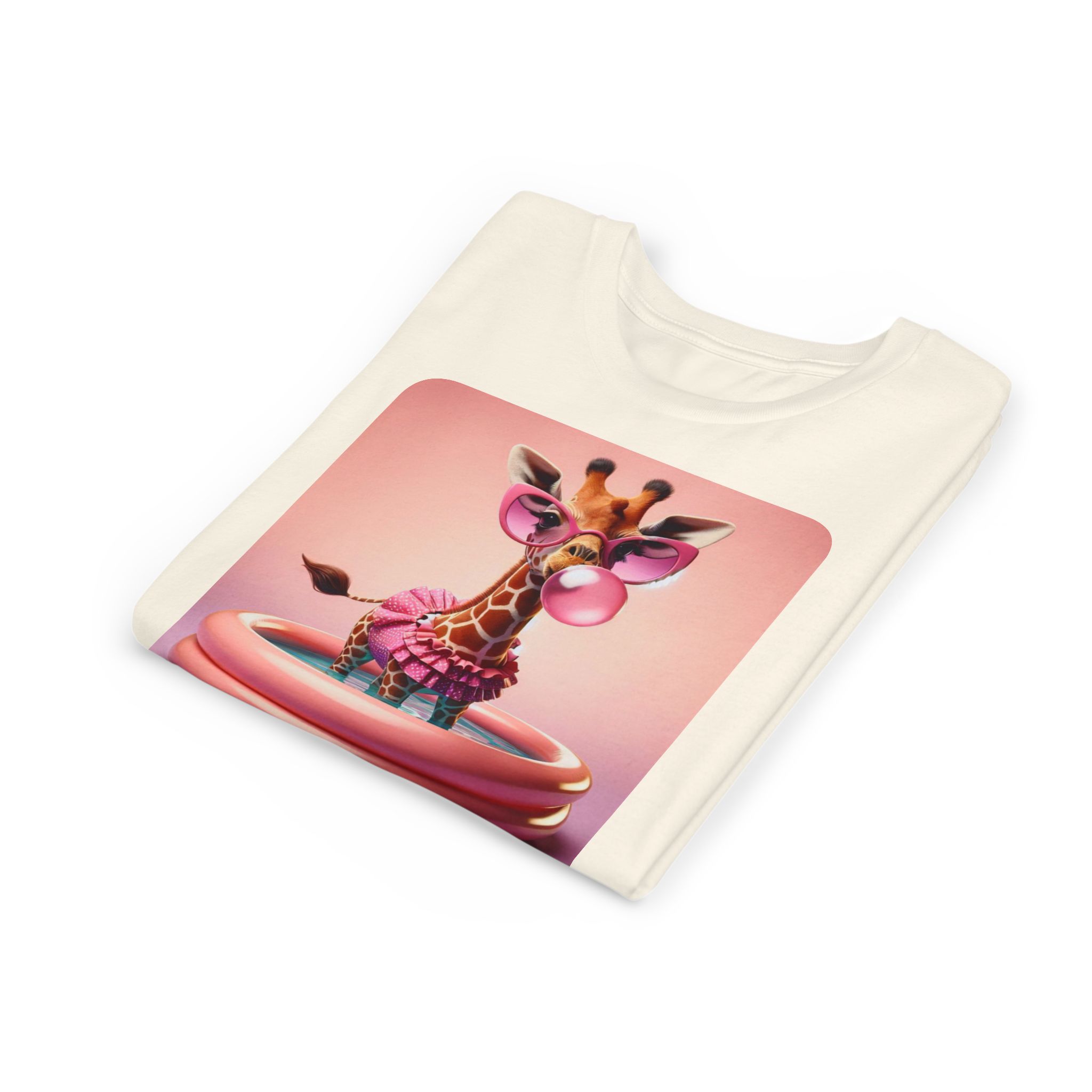 This burgundy kids tee features a bold graphic of a sunglass-wearing giraffe blowing a bubble bathgum bubble from a bubbly tub. It’s quirky, confident, and just the right amount of mischievous. Designed for kids who already know they’ve got style, even if they’re still working on tying their shoes.