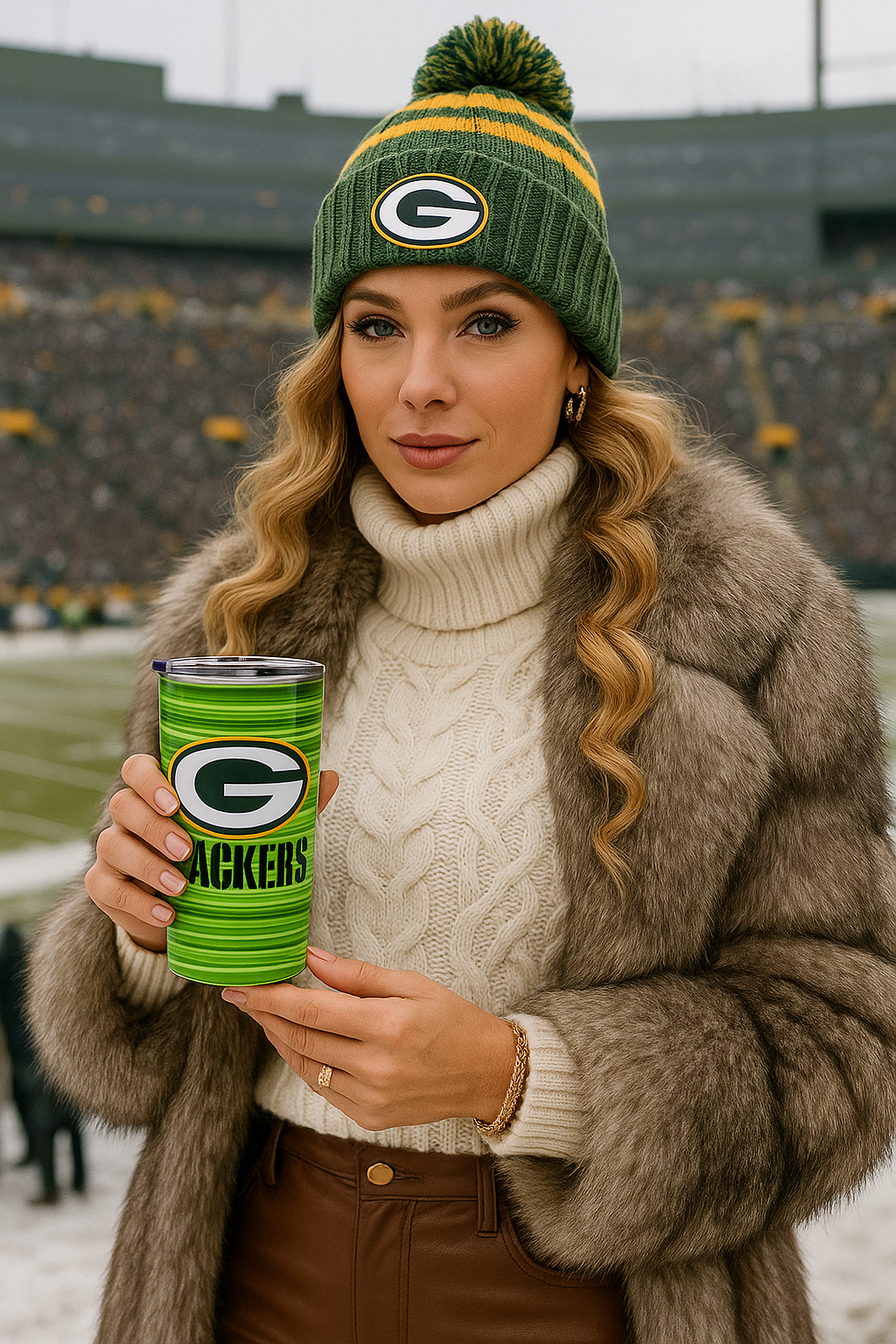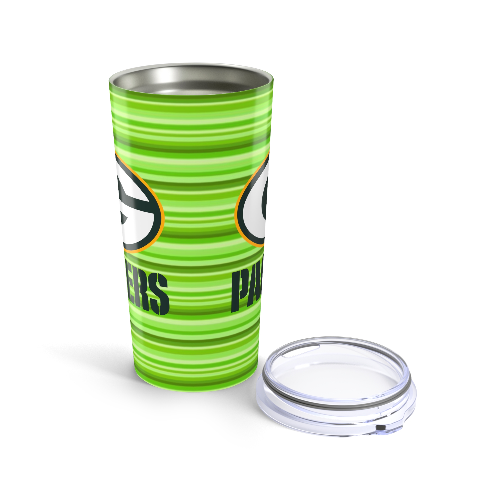 Show your Packers pride wherever you go with this stainless steel 20oz travel tumbler — built tough, styled bold, and made to perform. Its vacuum-insulated double-wall design keeps drinks hot or cold for hours, whether you’re on the road, at the office, or in the stands at Lambeau. The sleek rounded shape feels great in your hand, while the clear see-through plastic lid adds both convenience and polish.