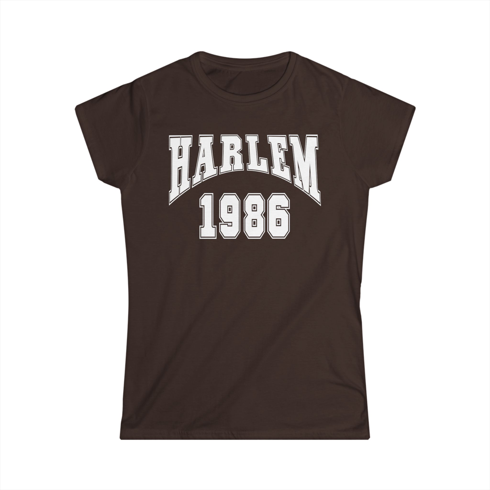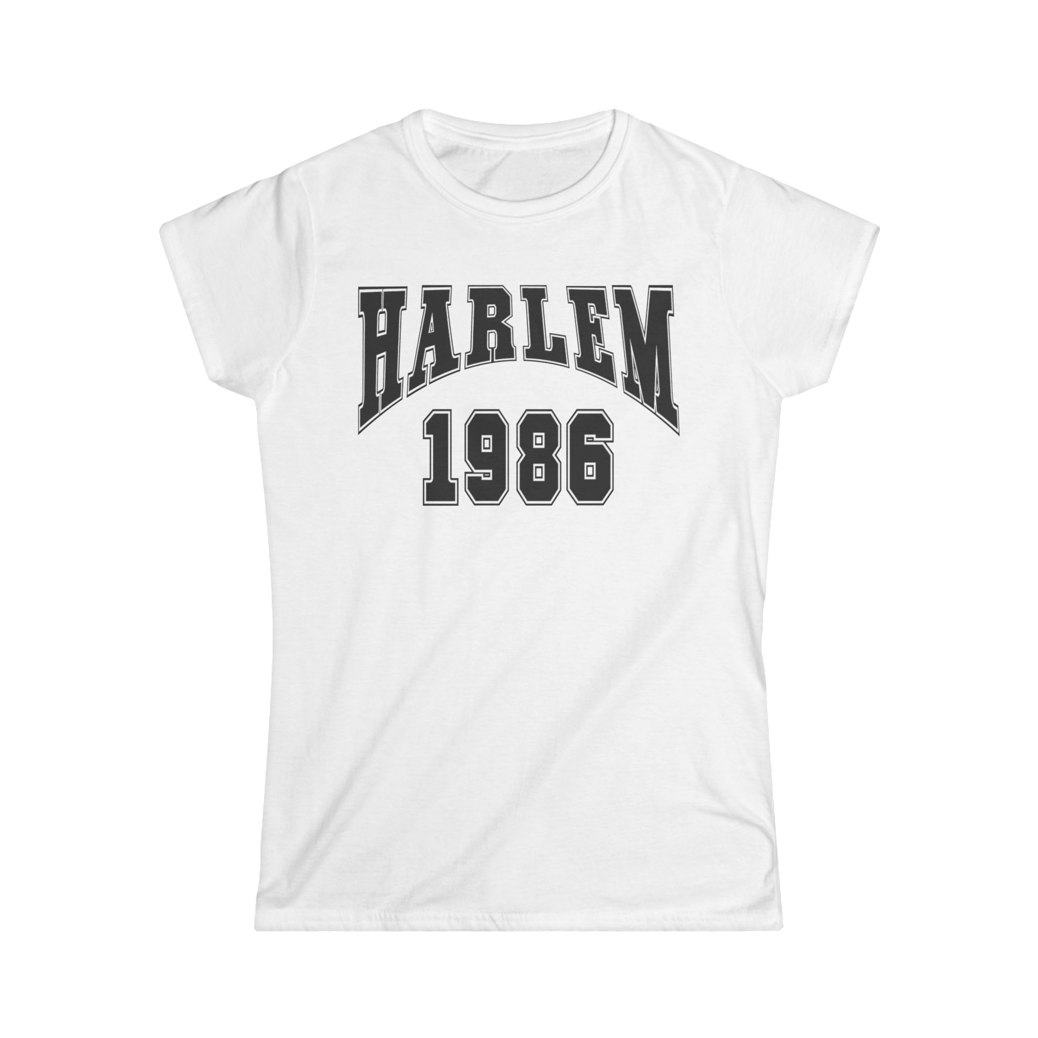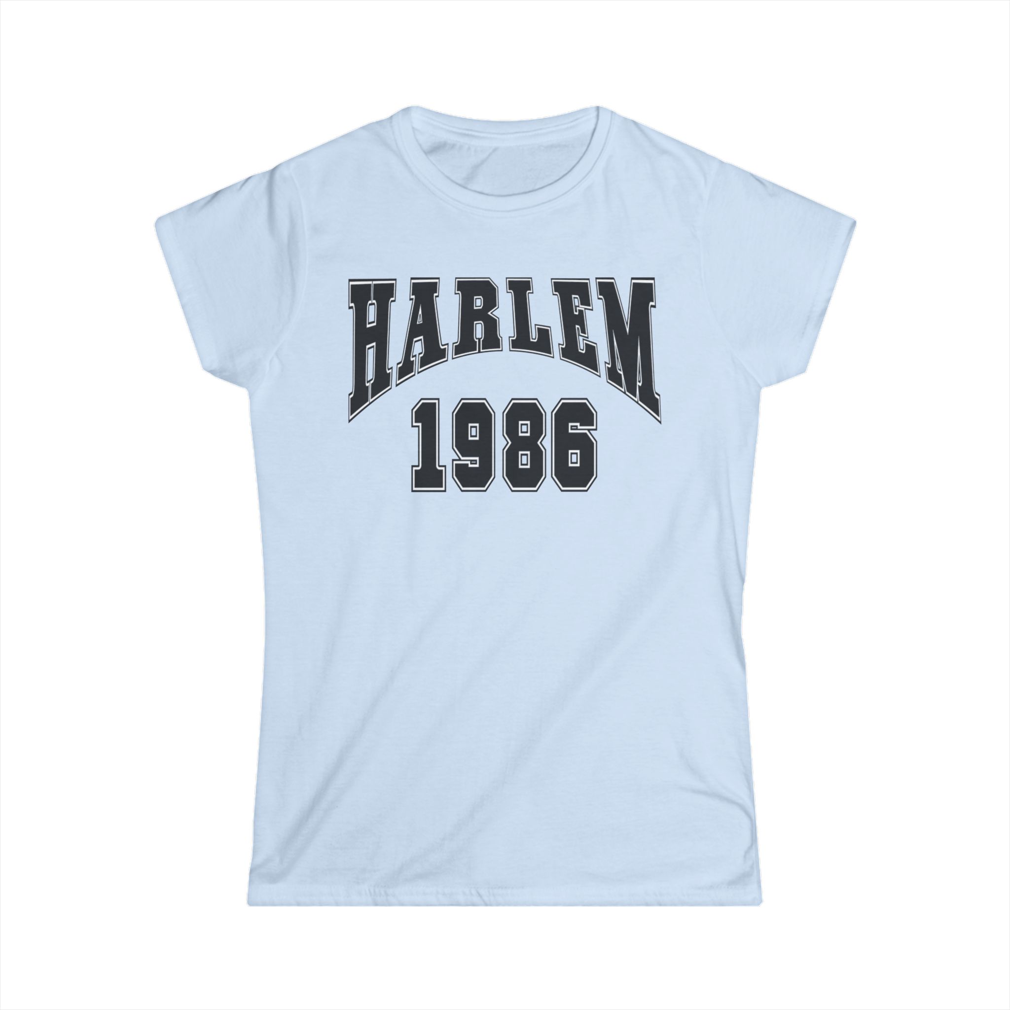 A classic graphic reimagined through elevated styling. The “HARLEM 1986” tee features bold collegiate typography printed in crisp white against a deep navy base. The fitted silhouette offers a flattering shape while maintaining everyday comfort, making it easy to dress up or down.