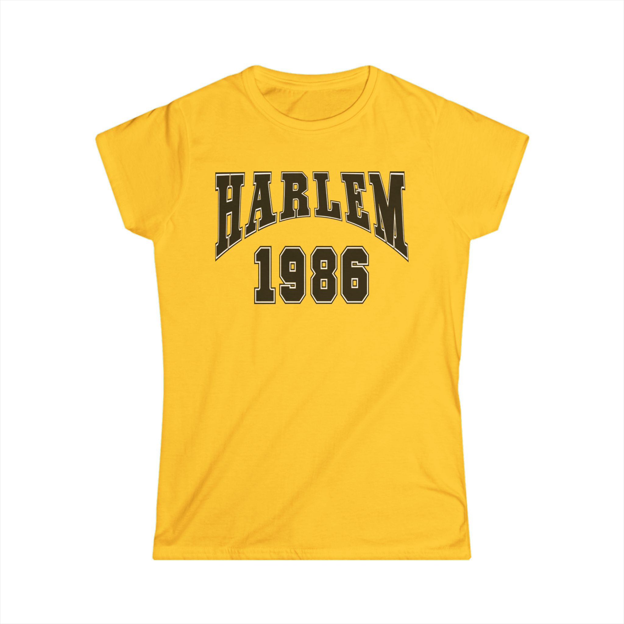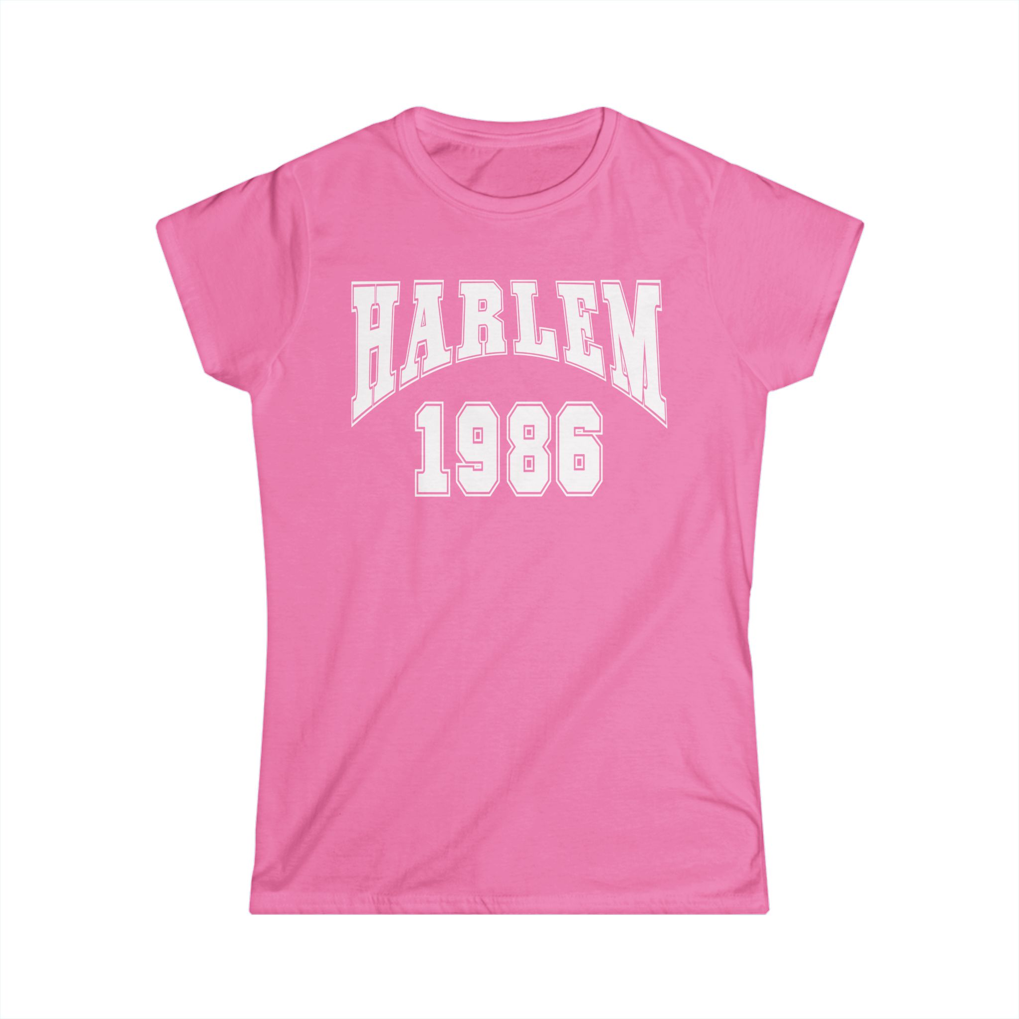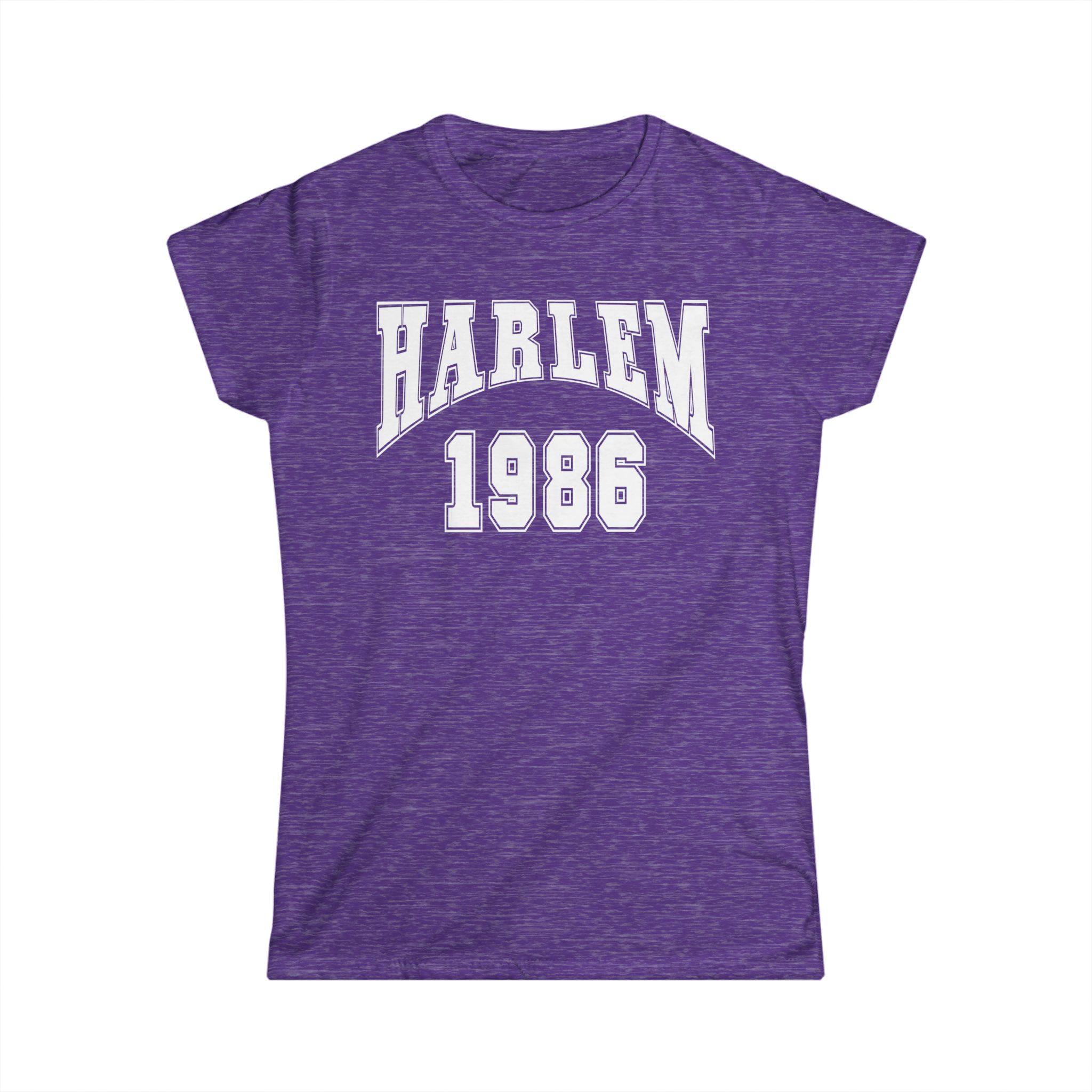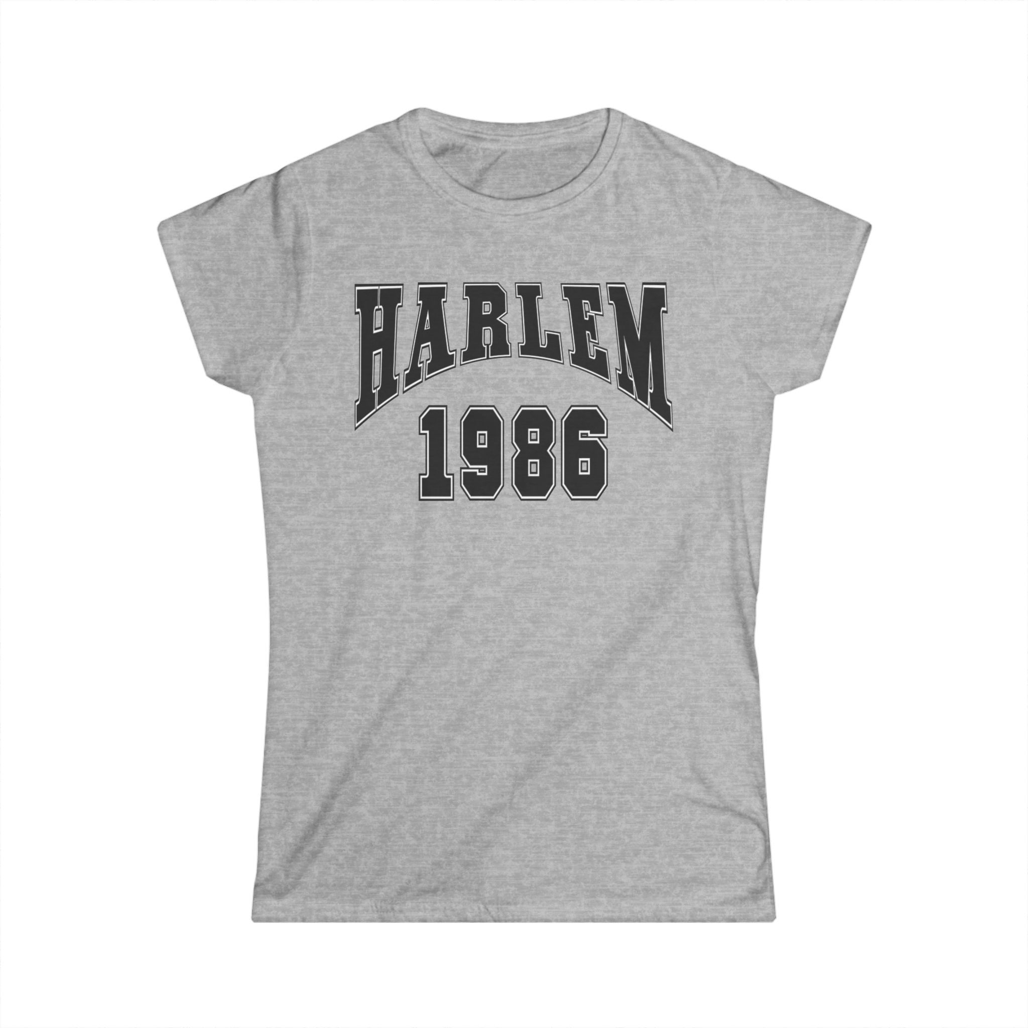 A classic graphic reimagined through elevated styling. The “HARLEM 1986” tee features bold collegiate typography printed in crisp white against a deep navy base. The fitted silhouette offers a flattering shape while maintaining everyday comfort, making it easy to dress up or down.
