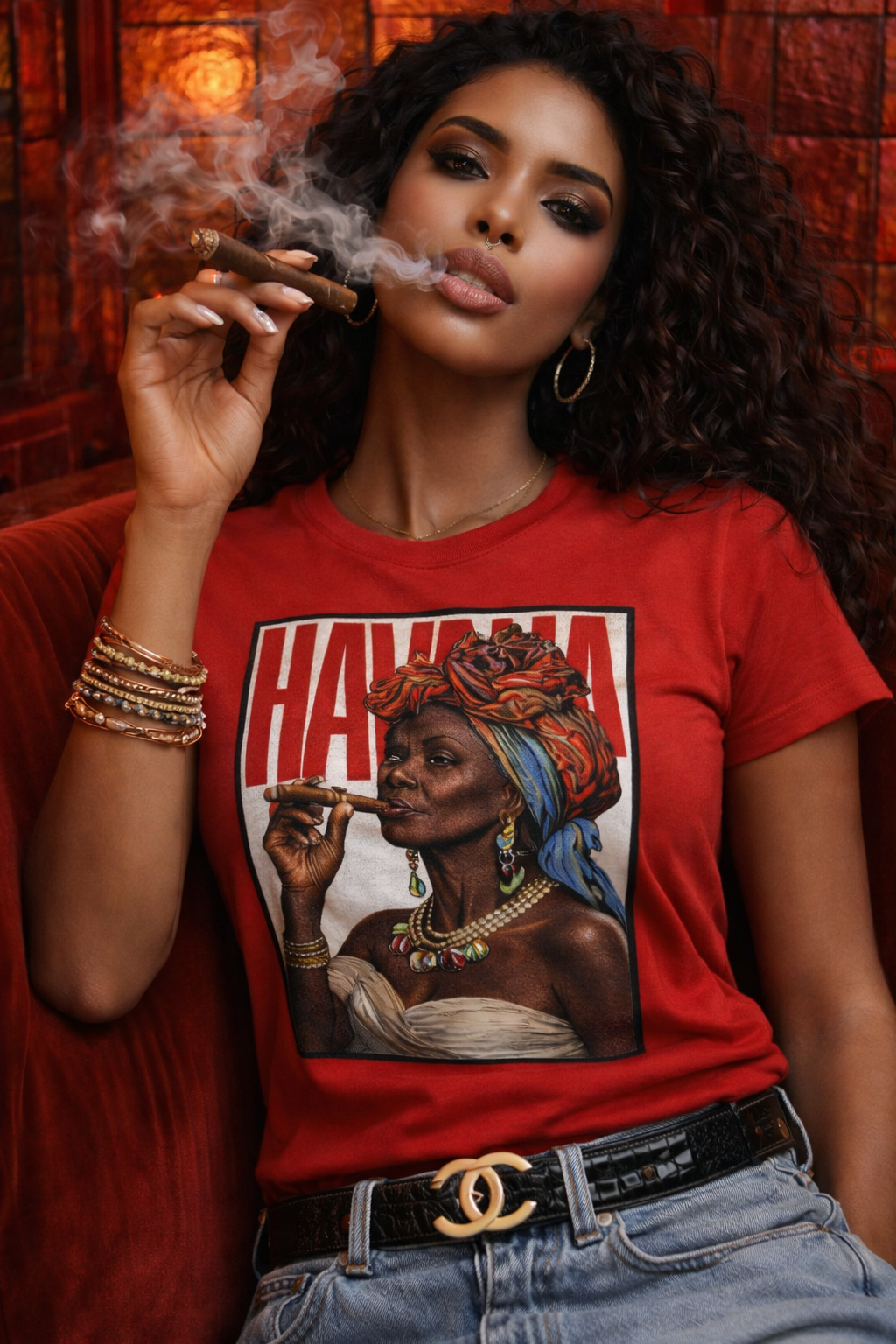 The Havana Women’s Tee captures the timeless allure of Cuba’s legendary streets and cigar lounges. Featuring a striking portrait framed with bold typography, the design celebrates the elegance, confidence, and unmistakable swagger associated with classic Havana culture.
