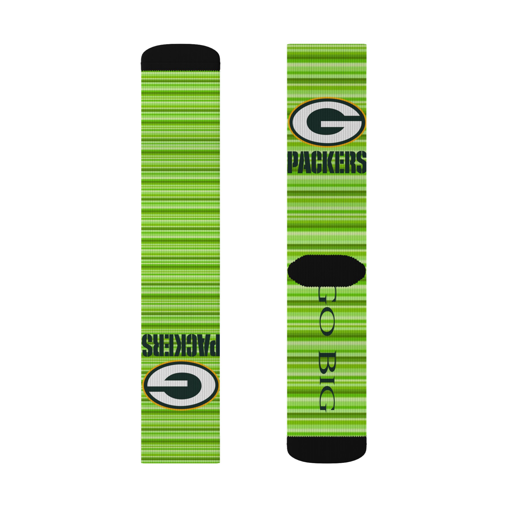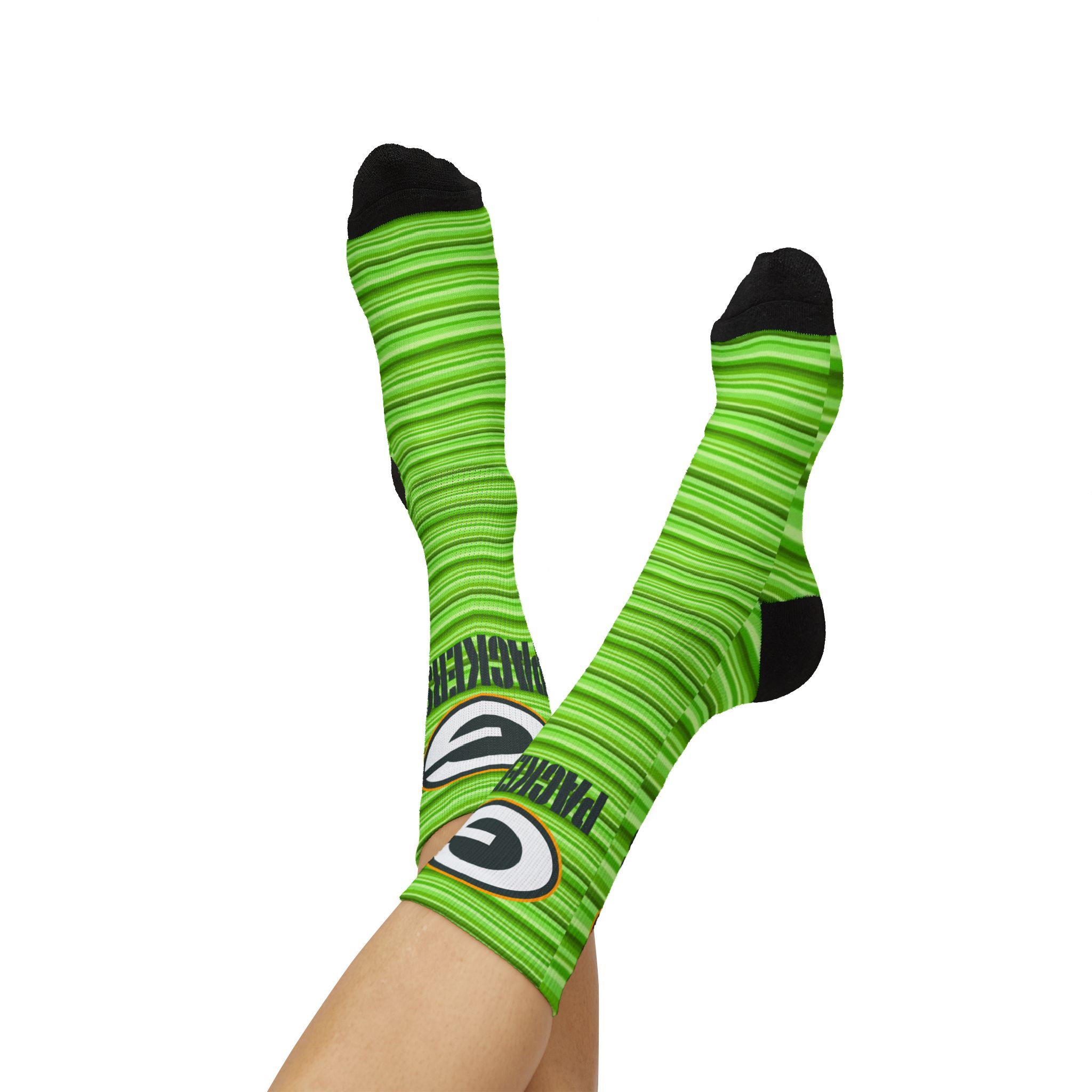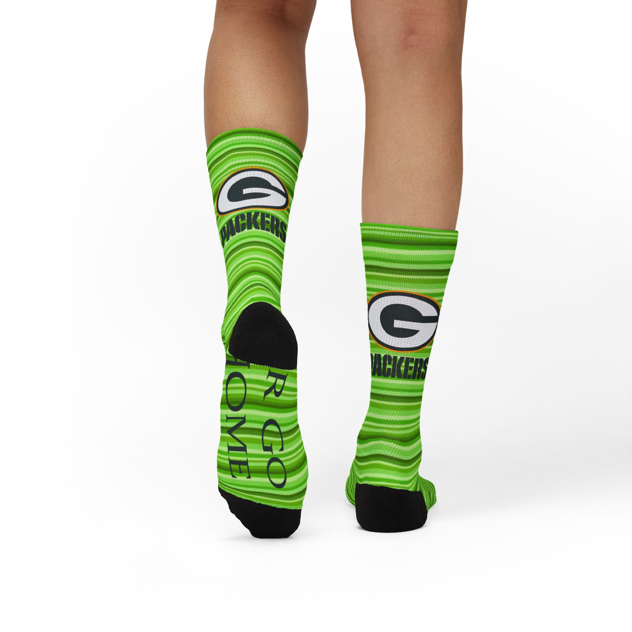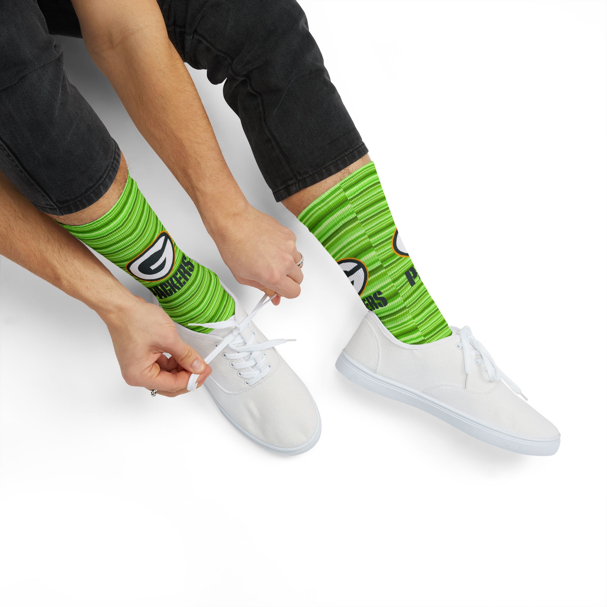 Cozy meets couture in these smooth, printed Green Bay Packers socks — designed for fans who like their game-day spirit polished, not basic. Made with vibrant green stretch fabric and bold black accents, they feature the official Packers logo perfectly placed above the ankle and “PACKERS” lettering just below for a clean, athletic finish. Whether you’re curled up by the fire or catching the game in your favorite lounge set, these socks bring the team pride and the high-end vibe. Not suggested choosing dark color prints, color difference can be seen on side seams. .: 60% Polyester 10% Acrylic 25% Nylon 5% Spandex .: 3 different sizes .: Ribbed tube .: Cushioned bottoms .: NB! Printed with flat sublimation method. Color discrepancy can be seen on side seams
