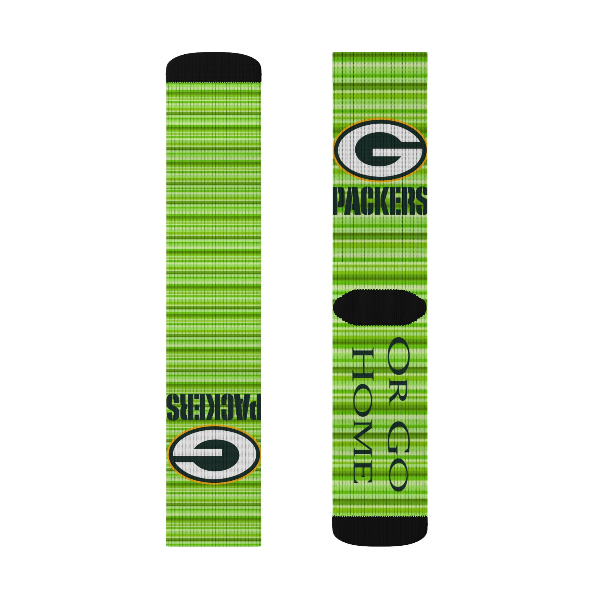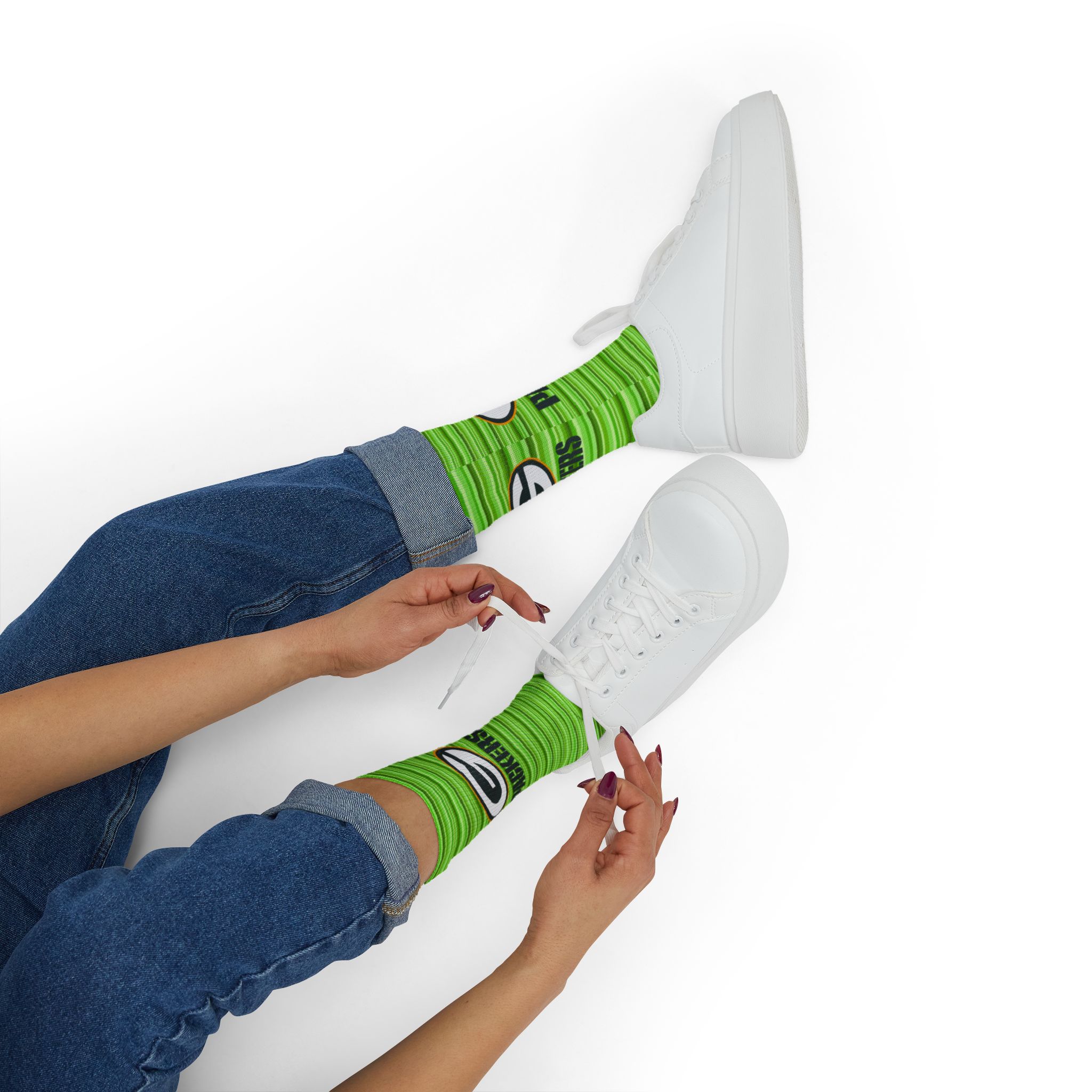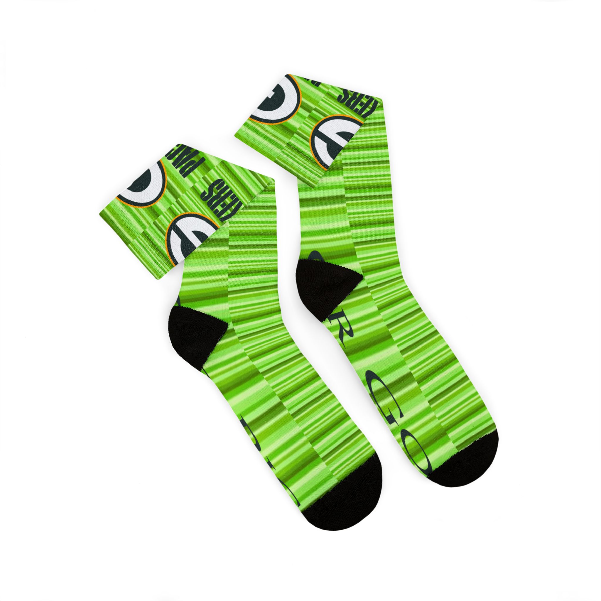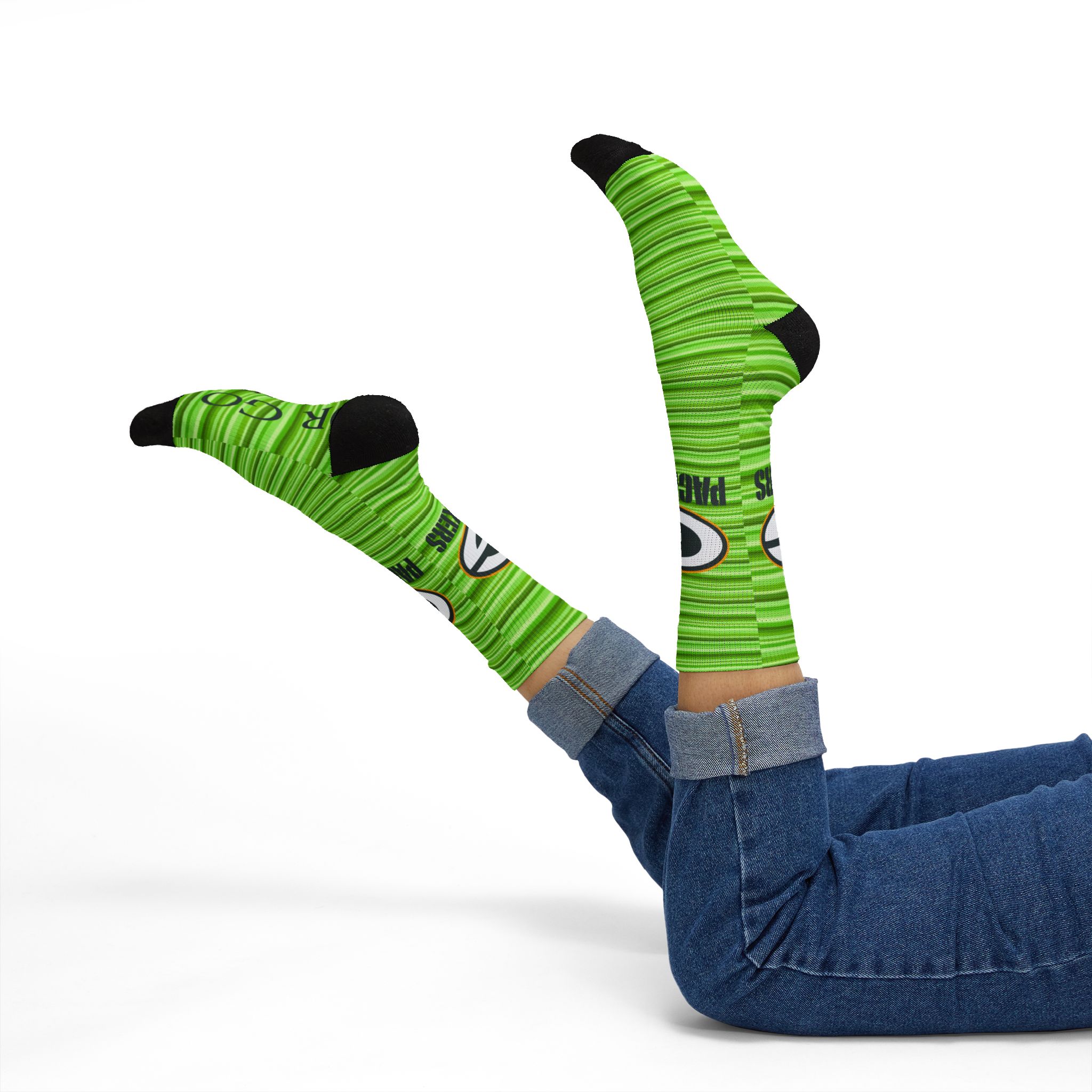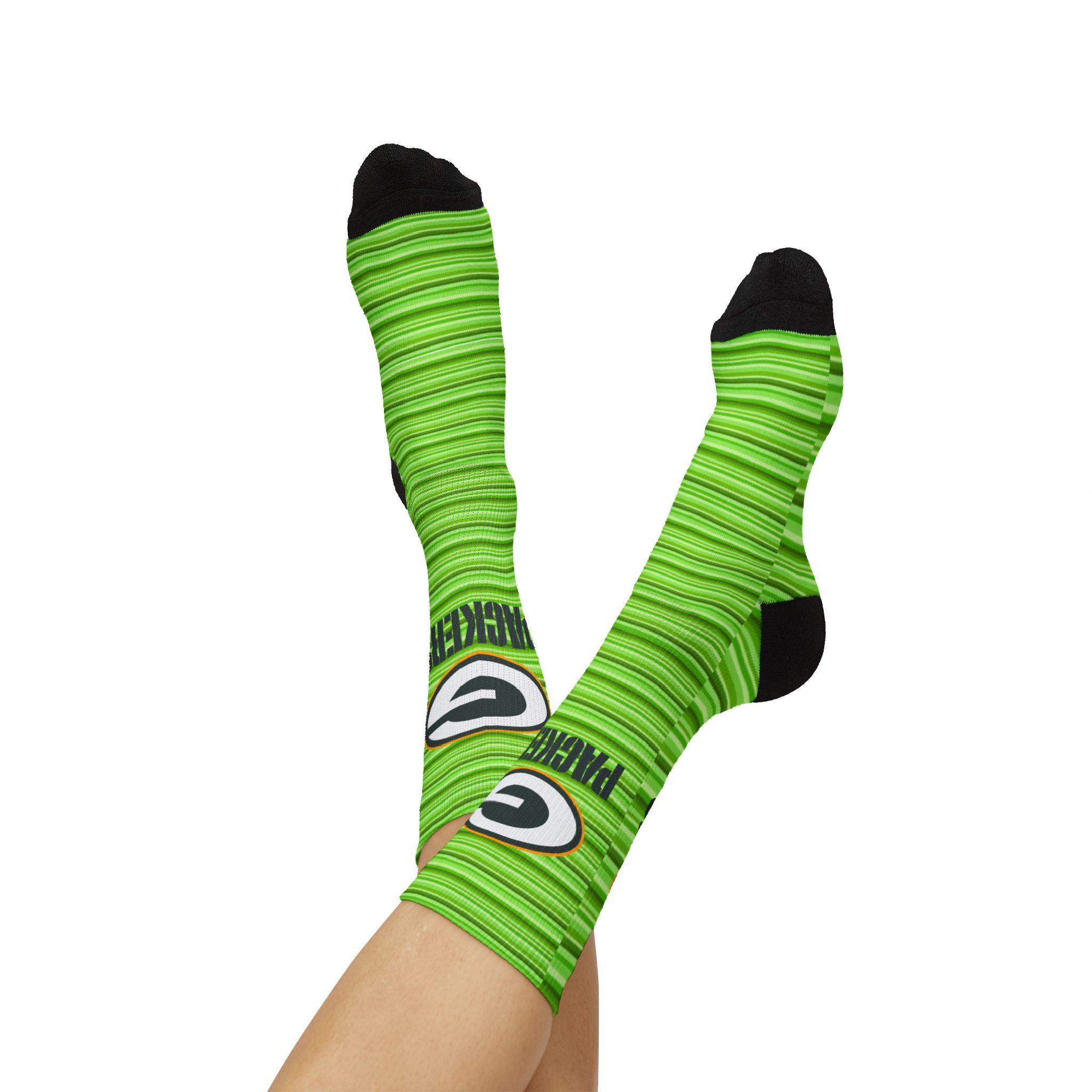 Cozy meets couture in these smooth, printed Green Bay Packers socks — designed for fans who like their game-day spirit polished, not basic. Made with vibrant green stretch fabric and bold black accents, they feature the official Packers logo perfectly placed above the ankle and “PACKERS” lettering just below for a clean, athletic finish. Whether you’re curled up by the fire or catching the game in your favorite lounge set, these socks bring the team pride and the high-end vibe. Not suggested choosing dark color prints, color difference can be seen on side seams. .: 60% Polyester 10% Acrylic 25% Nylon 5% Spandex .: 3 different sizes .: Ribbed tube .: Cushioned bottoms .: NB! Printed with flat sublimation method. Color discrepancy can be seen on side seams