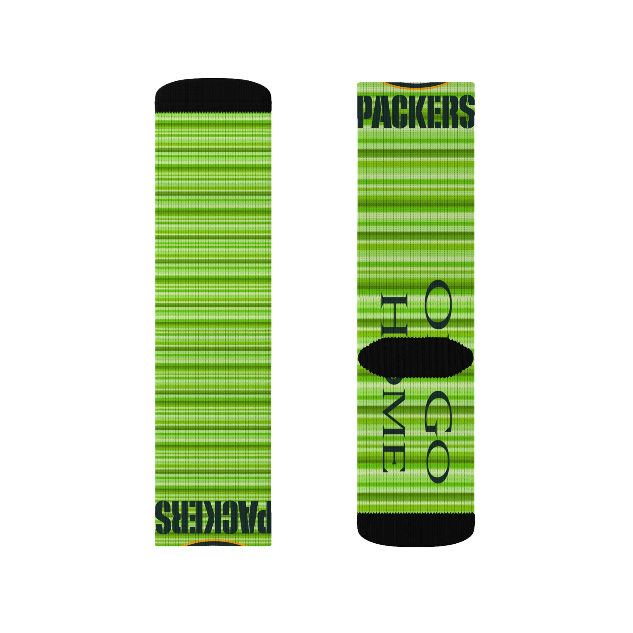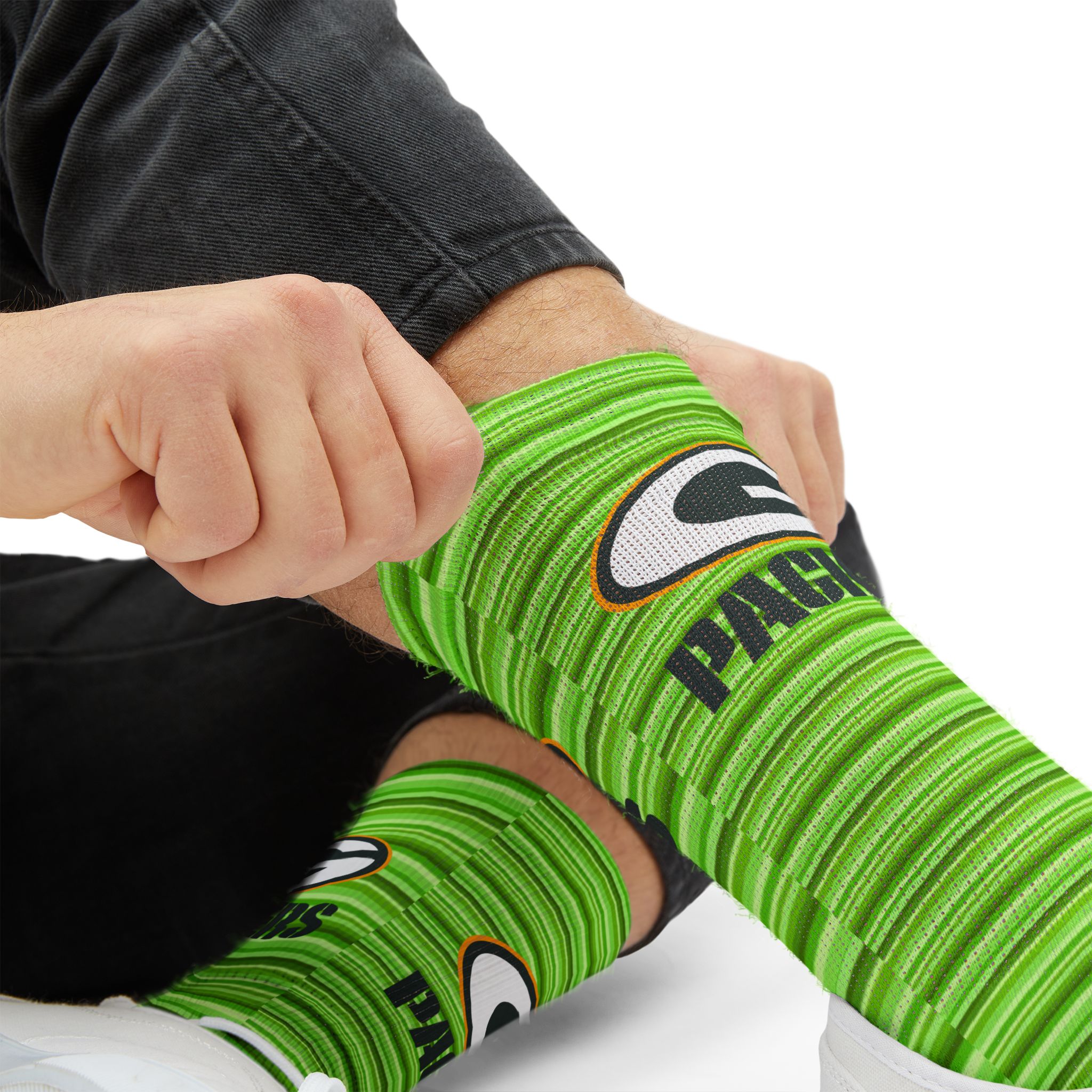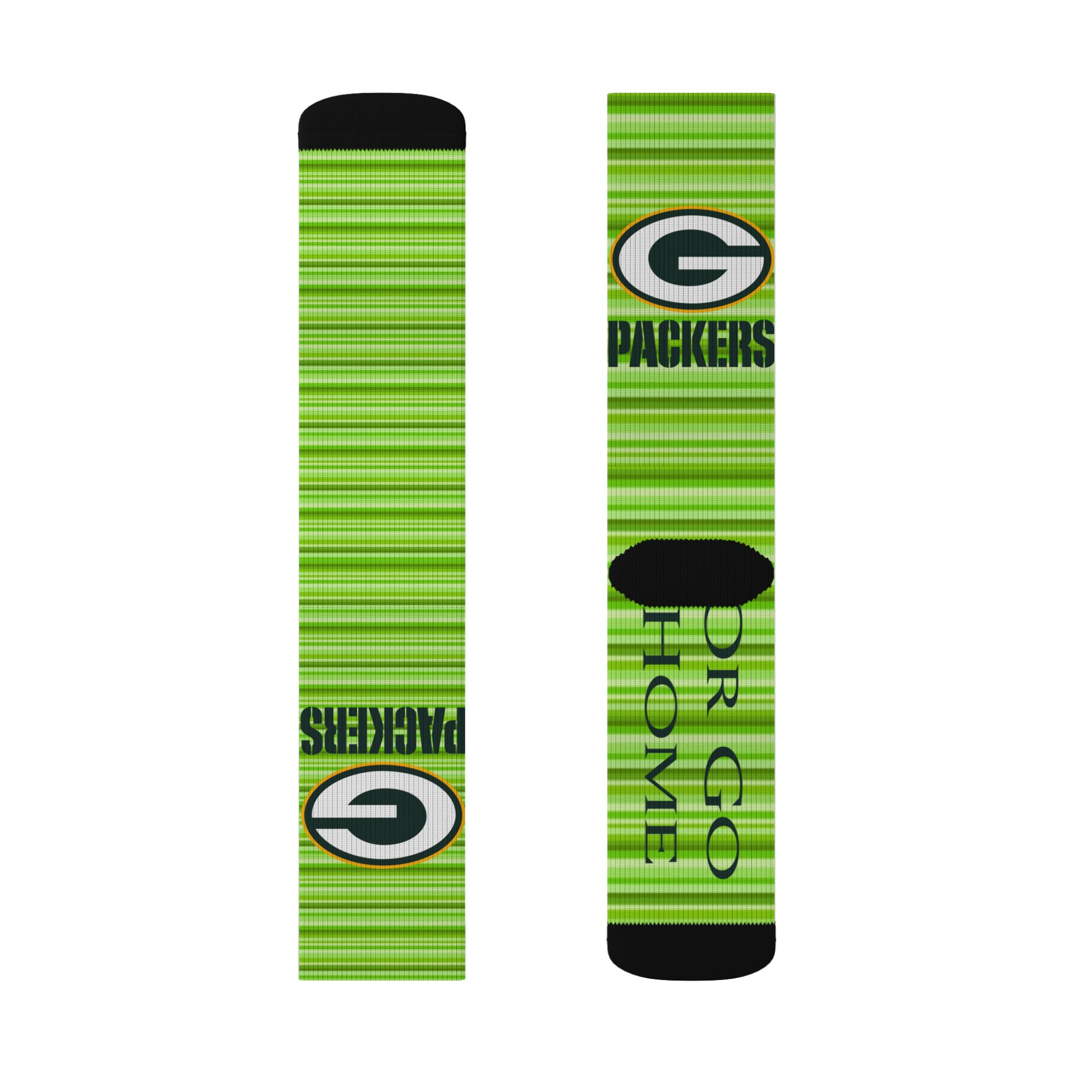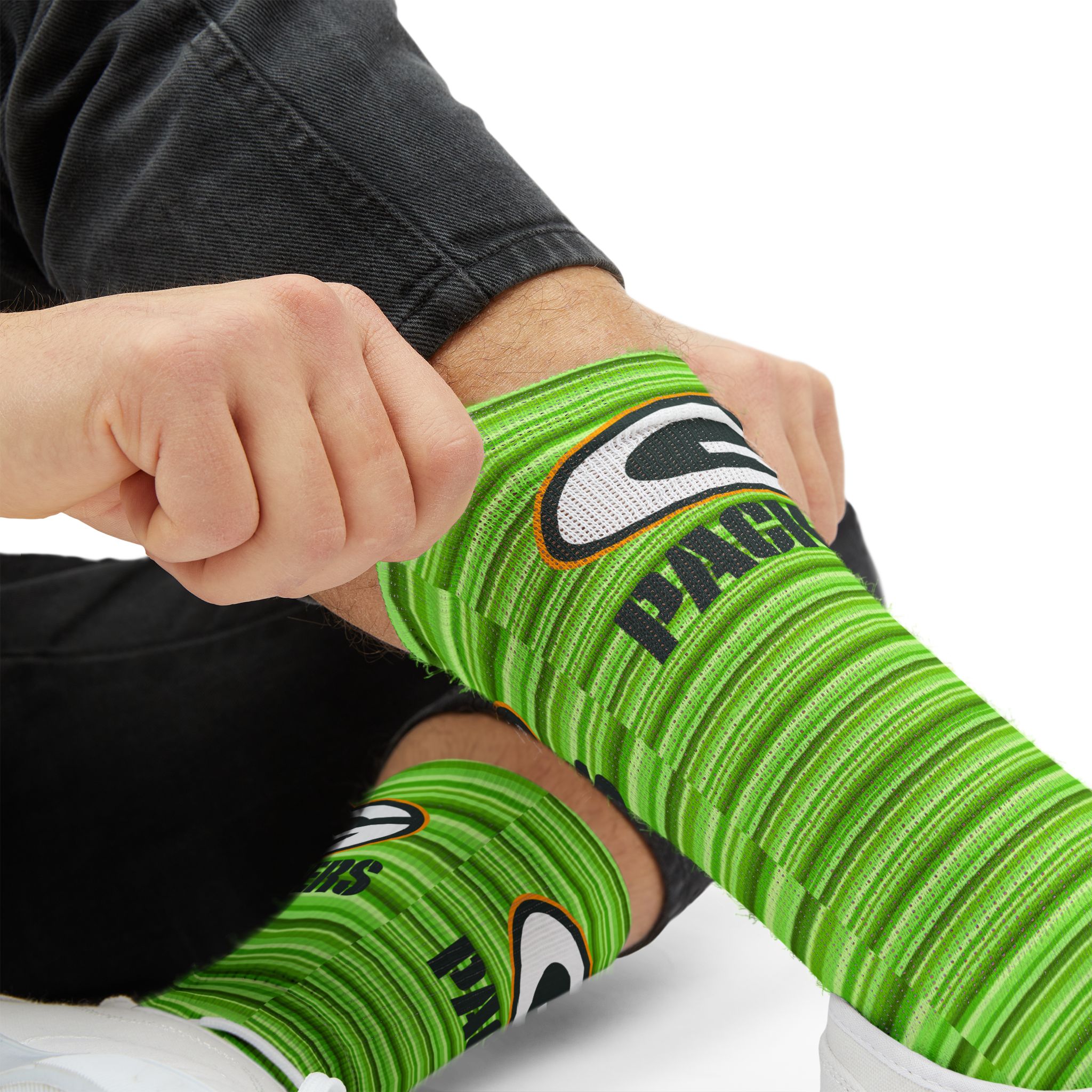 Cozy meets couture in these smooth, printed Green Bay Packers socks — designed for fans who like their game-day spirit polished, not basic. Made with vibrant green stretch fabric and bold black accents, they feature the official Packers logo perfectly placed above the ankle and “PACKERS” lettering just below for a clean, athletic finish. Whether you’re curled up by the fire or catching the game in your favorite lounge set, these socks bring the team pride and the high-end vibe. Not suggested choosing dark color prints, color difference can be seen on side seams. .: 60% Polyester 10% Acrylic 25% Nylon 5% Spandex .: 3 different sizes .: Ribbed tube .: Cushioned bottoms .: NB! Printed with flat sublimation method. Color discrepancy can be seen on side seams