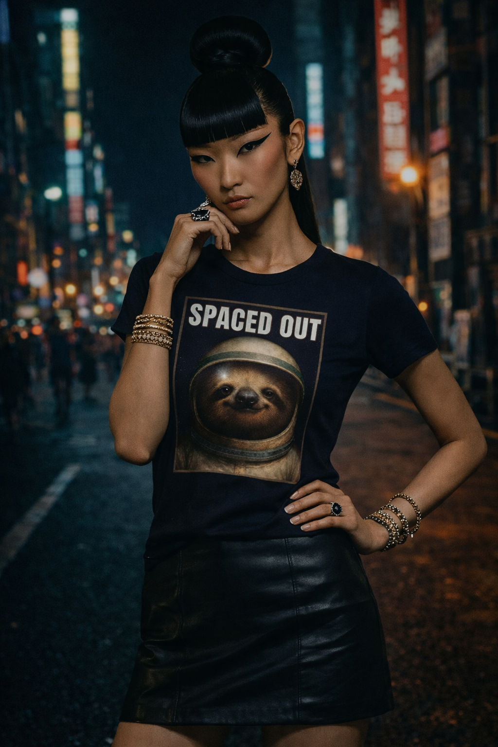 This navy tee features a playful yet bold graphic of a sloth in an astronaut helmet, paired with the phrase “SPACED OUT” in vintage-inspired typography. The unique design adds humor and whimsy to a modern wardrobe, while the sleek fit and high-quality print bring a touch of effortless style.