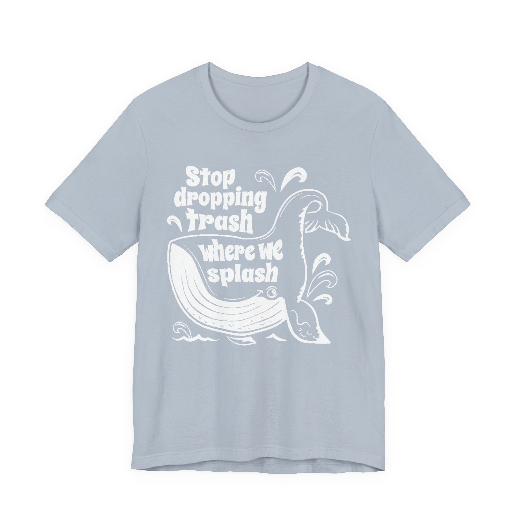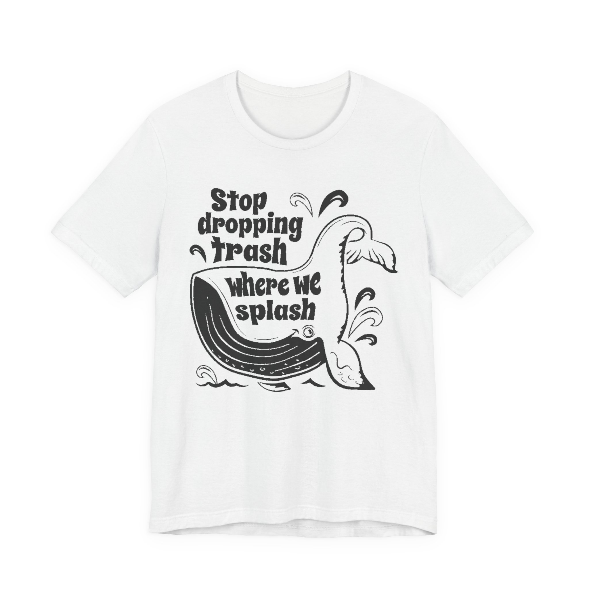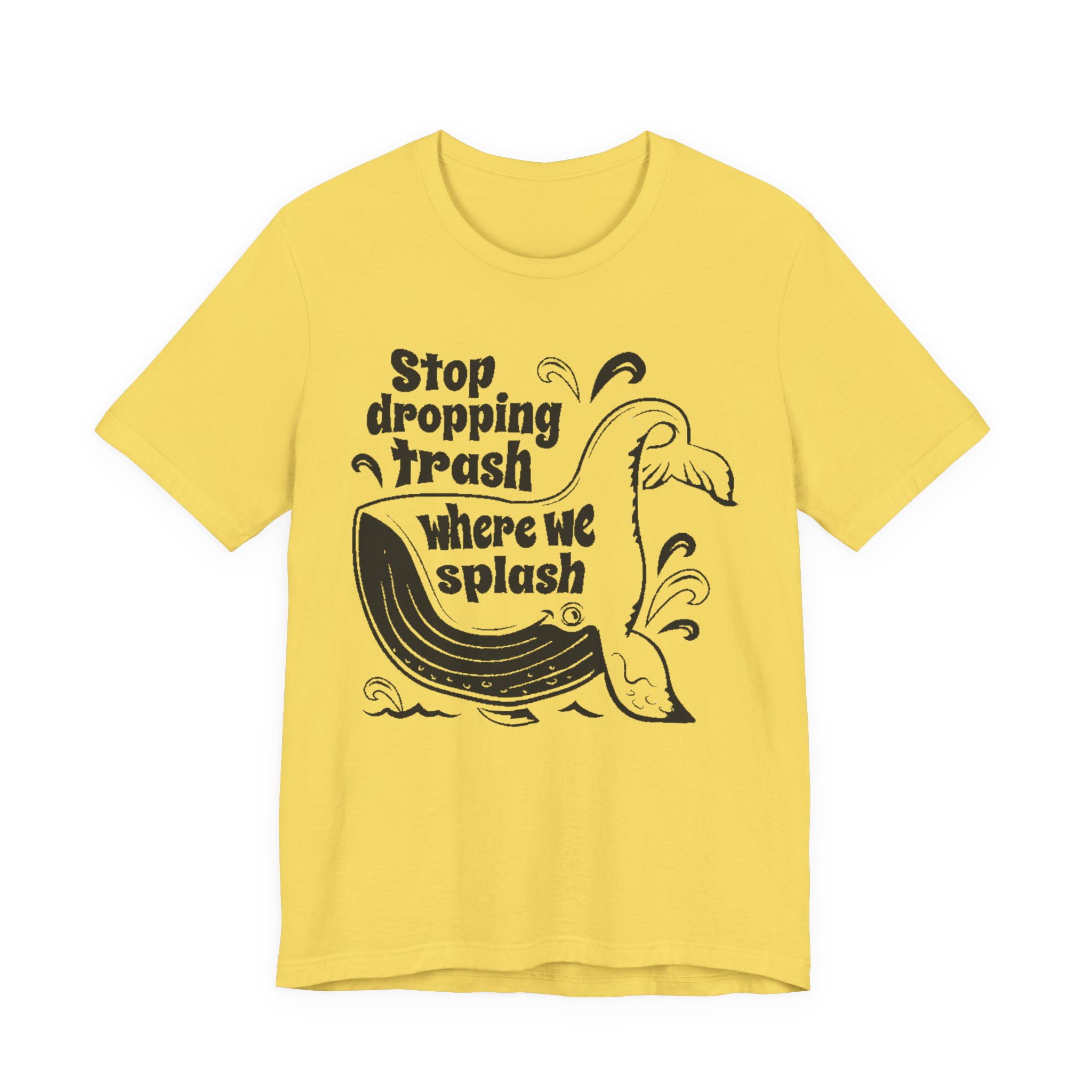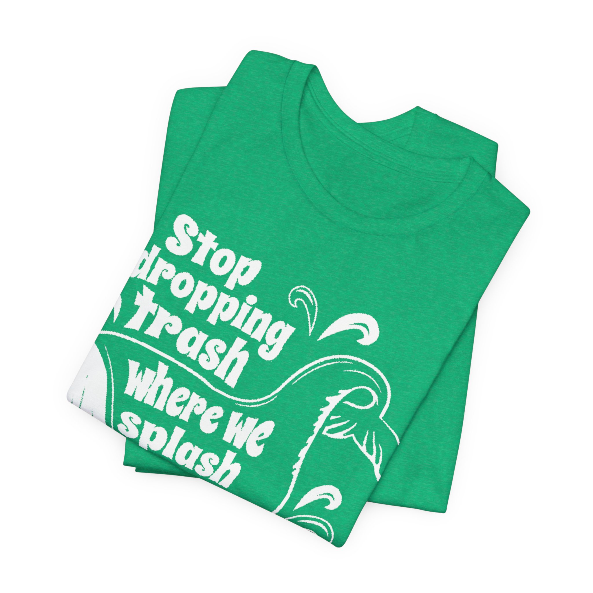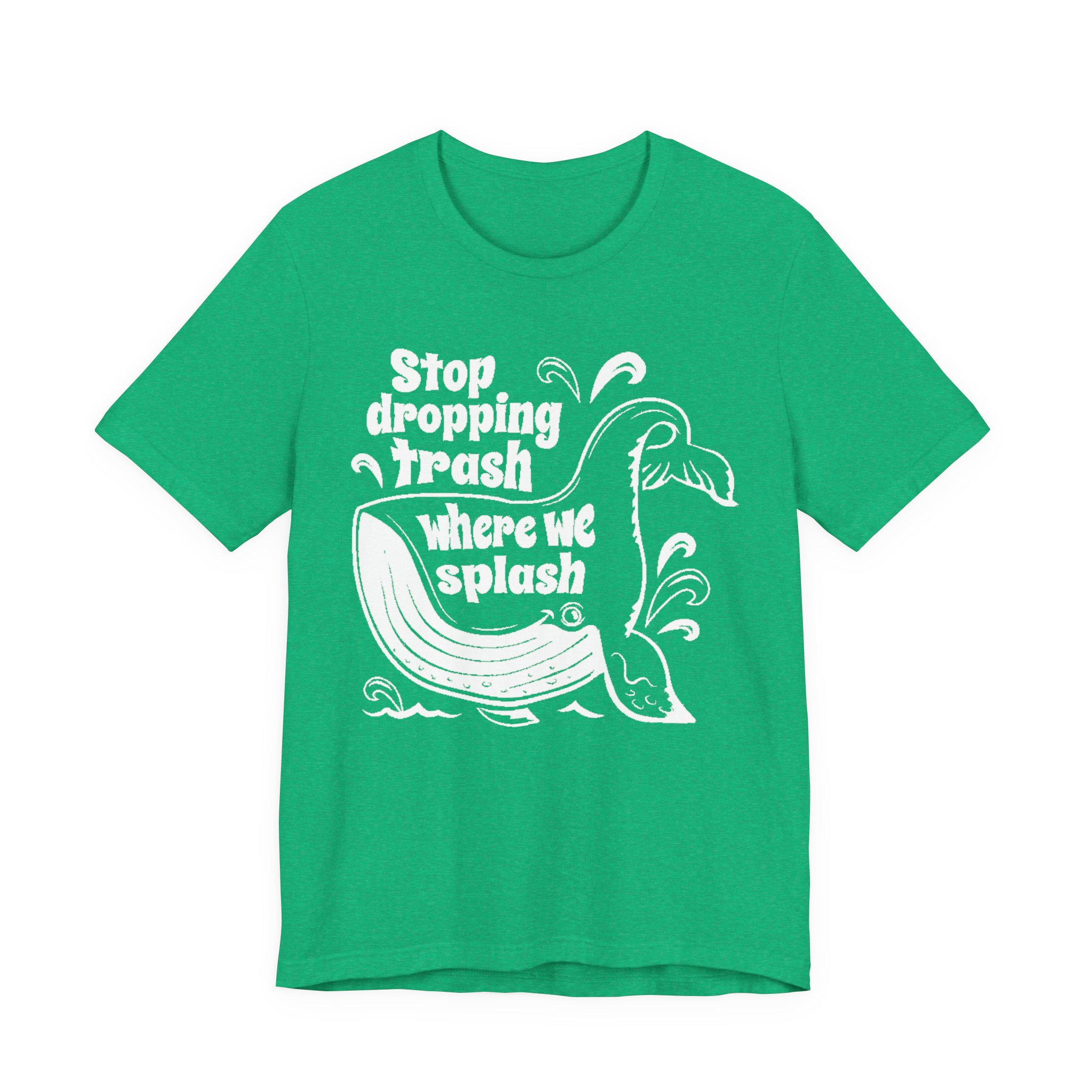 Make waves without saying a word. This bold green graphic tee features the original “Stop dropping Trash where we splash” artwork in crisp white, wrapped around a playful whale illustration. Clean print. No added effects. No distressing. Exactly as designed.